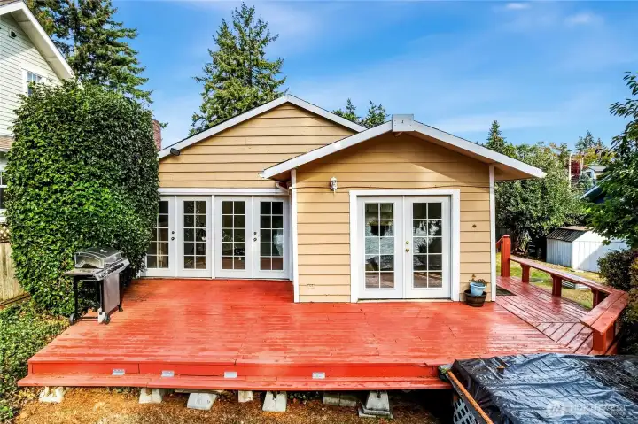 Experience affordable waterfront living in the charming village of Keyport! This tastefully updated home offers a spacious open-concept living and dining area filled with natural light from multiple French doors showcasing amazing water views. With three bedrooms—each on its own level for privacy—the primary suite features a walk-in closet, cozy fireplace, and ensuite with dual vanities, jetted tub, and separate shower. Enjoy a large deck overlooking the Puget Sound, garden space, storage shed, and private stairs to the beach. Conveniently located near shopping, amenities, ferries, and the naval base. Mortgage savings may be available for buyers of this listing.