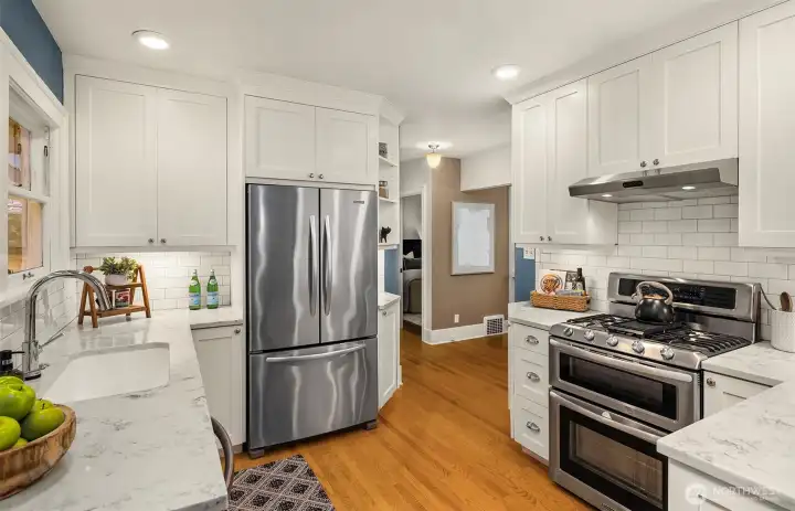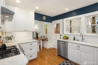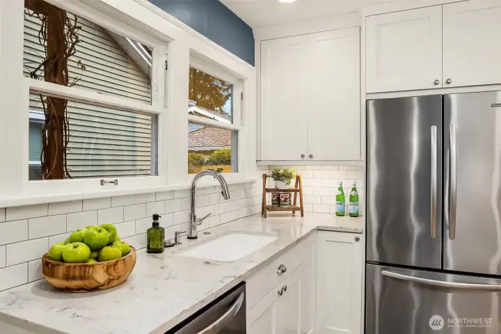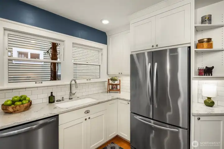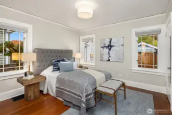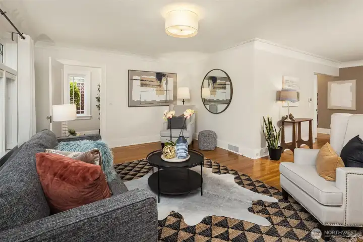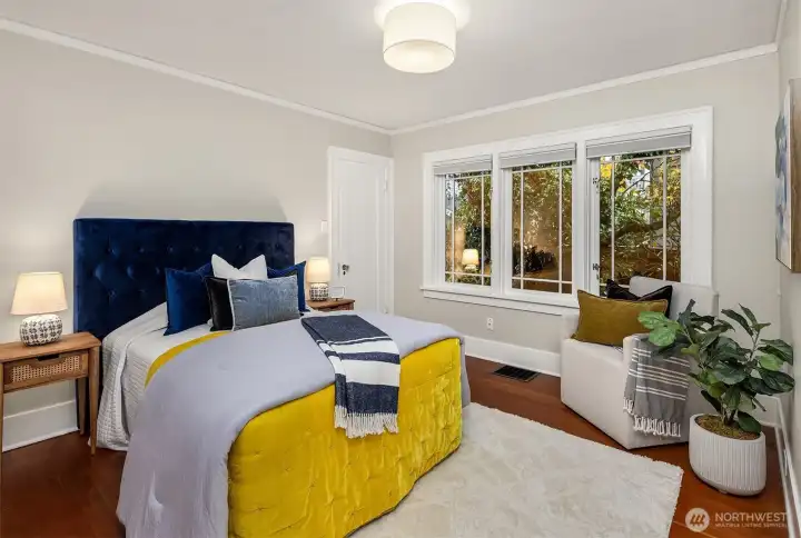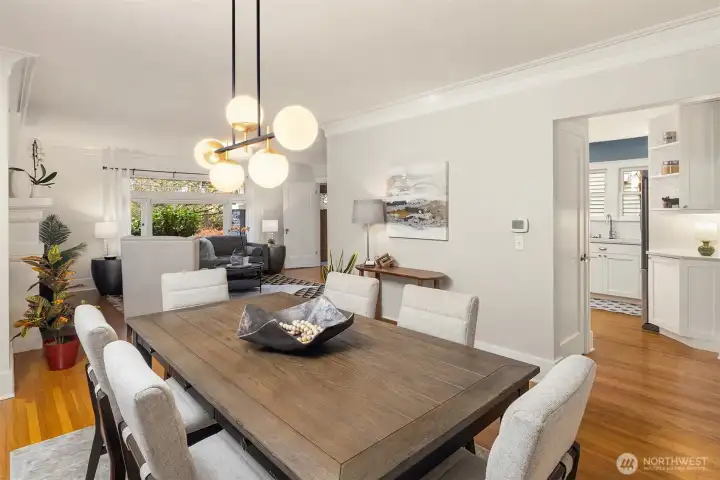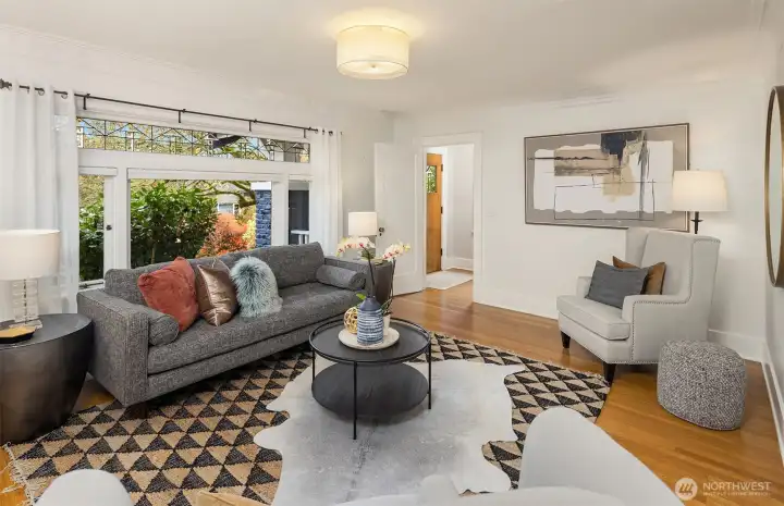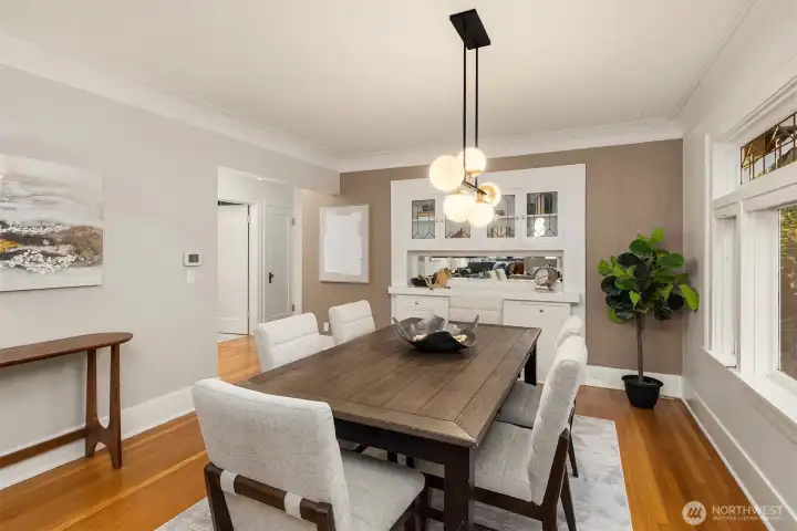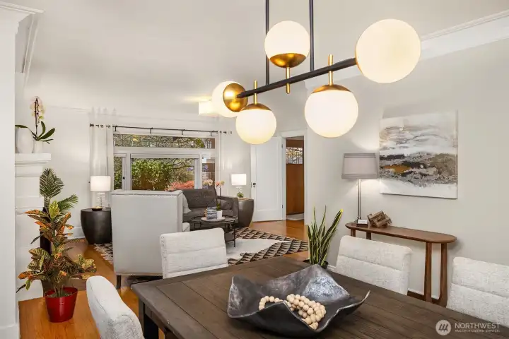 Perched high above Latona Ave, this beautifully maintained craftsman is brimming with charm, original built-ins & windows, wood floors, coved archways, picture rails, formal dining room and has the classic walk up entry w/covered porch. Updated thoughtfully while retaining its original charm. Bright & sunny lot w/enclosed (ie roll gate) yard, detached automatic garage with electric car outlet off the alley, beautiful street appeal, easy to maintain front yard. Spacious and dry lower level with plenty of room for another bedroom, office, and/or den. Lots of storage. Fantastic condition, updates throughout. Completely move-in ready. Friendly neighbors/community, walking distance to option school McDonald Elementary, easy access to everything.