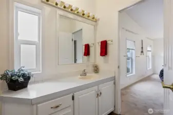 Welcome to Eagle’s Landing, a premier 55+ community where comfort meets convenience. This spacious 4-bedroom, 1.75-bath home offers thoughtful design & plenty of room for everyday living-or for guests when they visit. Soaring vaulted ceilings. The kitchen features abundant cabinetry & hardwood flooring, creating a warm and functional heart of the home. The primary suite includes a walk-in shower, generous walk-in closet, & ample storage. You’ll also find a dedicated dining area and an office nook—perfect for hobbies or quiet moments. New heat pump! Located close to Tumwater’s shops, dining, & amenities, this home offers an ideal blend of privacy, space, & easy living. The clubhouse offers events & activities to keep your calendar full!