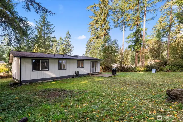 Peaceful living in the Palmer Lake Community! Offering 3 beds and 2 baths with semi-open concept living. New roof, gutters, exterior paint within the last 3 years, and brand new carpet throughout. The large kitchen features matching stainless steel appliances, fresh-looking cabinets, and a skylight that brings in abundant natural light. Easy access from the kitchen to the back patio, perfect for BBQing and entertaining. Sizable bedrooms with a bath off the primary. Expansive yard is your clean canvas, bring your imagination! Large 12x16 storage shed with side storage. For continued privacy, the north and east sides of the property are buffered by a green belt. Convenient walk to Palmer Lake, the playground, and other community features.