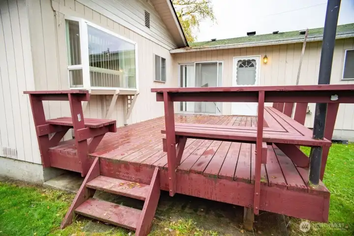 Cute 3 bed/2 bath one level home not too far from freeway. 1236 square feet with attached garage. Fenced and corner lot. Open concept living and dining room an offers a fireplace. Glass slider that leads out to a large deck and backyard perfect for entertaining. Charming galley kitchen has newer quartz countertops, garden window and breakfast nook. Fresh interior paint and professionally cleaned. Has been a great rental. Come tour this home today.