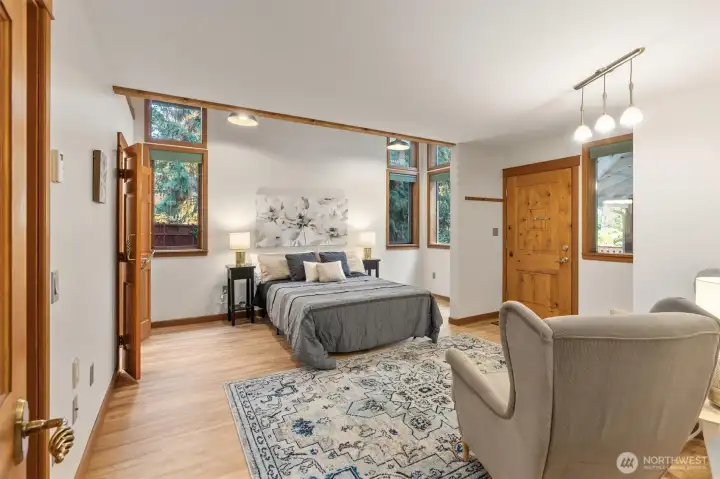 Stunning NW contemporary, secluded 1.3-acre setting, just 4 minutes to downtown Monroe. Vaulted ceilings & floor-to-ceiling windows flood the home w/ year-round natural light. Granite/stainless kitchen boasts 5-burner range & breakfast bar. Desirable main-level owner’s suite has access to the back deck & private hot tub. Fresh interior paint & new flooring. Efficient & quiet in-floor radiant heat & durable metal roof. Expansive tropical hardwood deck —ideal for entertaining. Lower level features a family room & spaces for office or gym. Oversized insulated 2-bay garage with 10 ft doors & 110-amp service, storage loft, plus outbuilding, fenced yard, raised garden beds & chicken coop. Peaceful rural vibe, quick access to schools, shops, SR-2