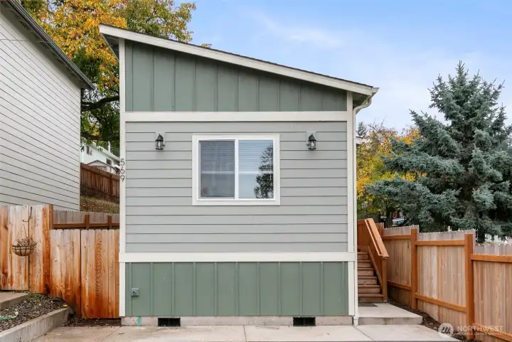 Tucked away with a modern yet cozy feel, this thoughtfully designed home is the perfect mix of comfort and style. The open layout features vaulted ceilings and large windows that fill the space with light, while the sleek vinyl flooring and clean finishes tie it all together. The kitchen shines with white shaker cabinets, quartz countertops, and stainless steel appliances, ideal for everything from a quiet morning coffee to weekend entertaining. Step outside to enjoy evening BBQs or unwind on the patio. Complete with a mini-split system for heating and cooling and a full four-season insulation package, this petite modern haven is ready for easy living all year long.