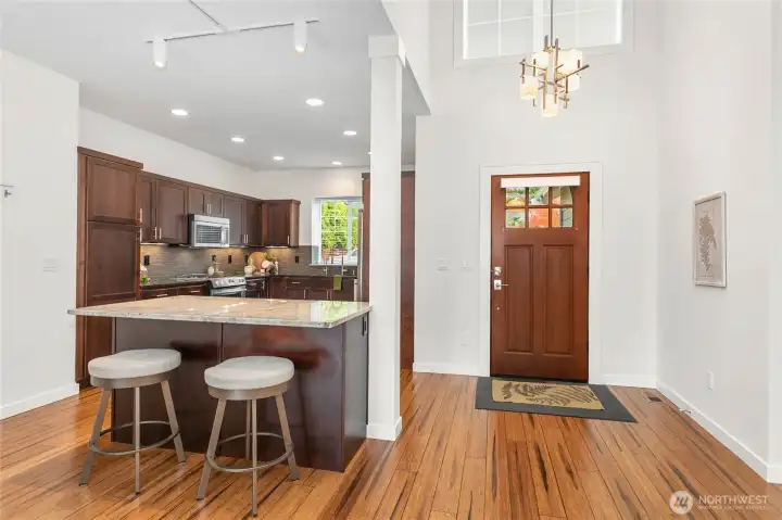 Beautifully maintained 3-BD, 2.25-BA Craftsman in Barkley Crossing. Thoughtfully designed w/ all the essential living spaces on one level, this home offers both comfort & convenience. Inside, you’ll find fresh paint, bamboo floors, & timeless details in wood, tile, & stone. The open layout connects the living area—centered around a real rock fireplace—to a well-appointed kitchen w/ soft-close cabinetry & quality finishes throughout. The primary suite & main-floor laundry make daily living easy. Step outside to enjoy the well kept landscaping & a private backyard that borders a peaceful greenbelt. Minutes from Barkley Village shops, trails, & parks. Craftsmanship coupled w/ modern living in one of Bellingham’s most desirable communities.