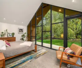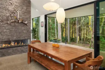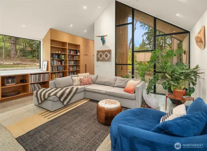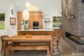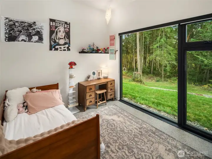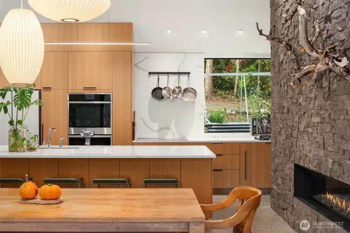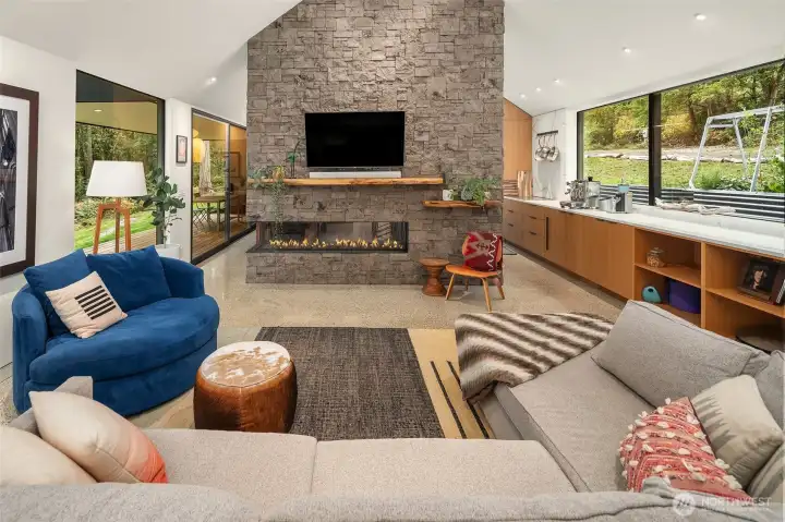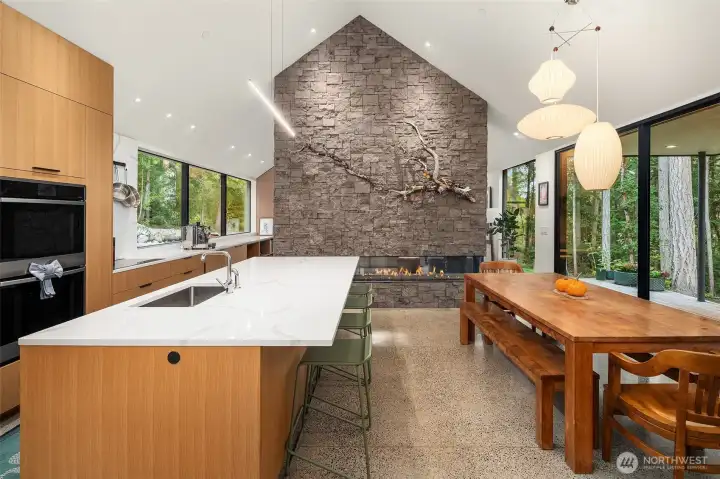 Welcome to Nordic Casa, a 2023 modern masterpiece by acclaimed architects from Specht Novak. Step inside and feel the effortless flow of a welcoming retreat where open-concept design connects every space with intention - blending warmth, function, and artistry. Dramatic vaulted ceilings and polished concrete heated floors, anchored by a striking 3-sided fireplace. Custom white-oak cabinetry and quartz countertops reflect natural elegance, while tropical hardwood decks and covered patios blur the line between home and forest. Impressive curtain walls and floor-to-ceiling windows frame madrone views and starlit skies. Smart lighting, built-in office, flexible bonus space—just minutes to town, schools and KVI, yet a world apart in tranquility.