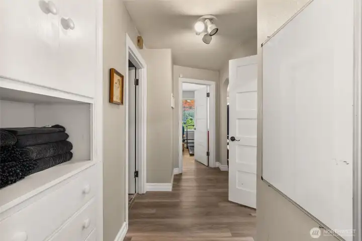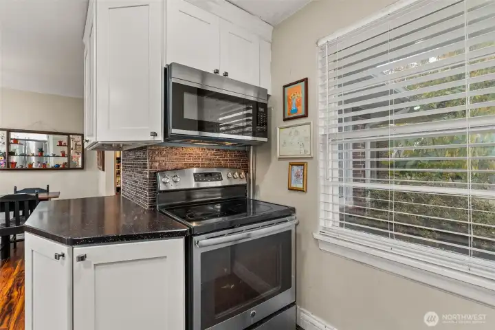 Beautifully updated and well-maintained rambler sits on a large lot in Centralia's beloved Edison District. 1,723-sq.ft. home, 4 bedrooms & 1.5 bathrooms. Renovated bedroom boasts its own half-bath and separate entrance, ideal for multi-generational living. Luxuriate in the primary suite with skylights, French doors, and brick-encased wood stove. LVP and laminate flooring. Remodeled bathroom. Two wood-burning fireplaces and heat pump with A/C. All appliances included. Light-filled rooms, custom cordless blinds throughout. Solid roof, strong foundation, and elegant brick construction. One-car garage and spacious, fully fenced backyard with carport. Excellent schools, close to town, lovely neighborhood on tree-lines street. Come see it today!