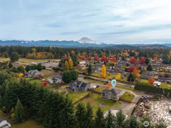 No HOA! Beautifully maintained home on a full, level acre. Fresh updates: new countertops, interior paint, new carpet, fixtures/lighting, & new stove! Spacious 4 bed+den+bonus rm w/ formal living/dining & open gourmet kitchen. Feat. hardwoods, 2 FPs & A/C. Deluxe primary suite has a see-through gas FP to the 5-pc bath w/ large walk-in tile shower. Fenced acre w/ stunning Mt. Rainier view. Massive 40x56 (2,240sf) clear-span steel shop—ideal for hobbies, storage, or business possibilities. Feat: concrete floor, 220 pwr, 3 large doors (14', 12'6", 10'H). Also: 3-car garage, RV parking, RV pwr & dump. End of private paved st, near Hwy 410.