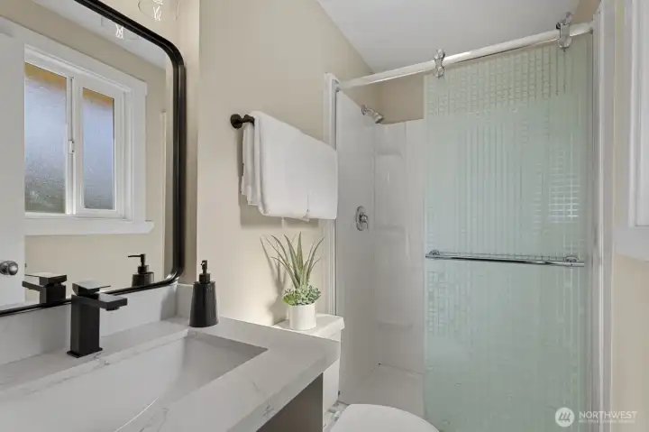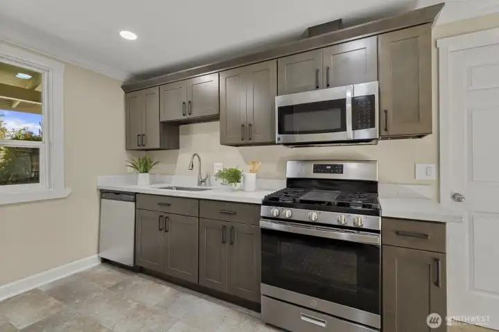 Fall in love with this charming Bothell home in an excellent, central location! Beautifully updated one-level home in the sought-after Northshore School District. Move-in ready with newly refinished hardwood floors, fresh paint, an all-new kitchen, and updated baths. Features 3 bedrooms, including a primary suite with an en suite ¾ bath. Chef's kitchen with quartz countertops & stainless steel appliances. Enjoy the spacious, fully fenced yard with plenty of room for gardening, play, or relaxation. Entertain on the oversized composite deck. Large 2-car attached garage provides space for projects and extra storage. Ample off-street parking. Conveniently close to shopping, dining, and freeways for an easy commute. Pre-inspected. Welcome home!