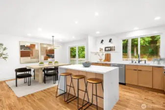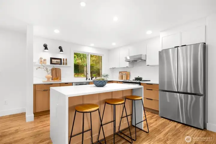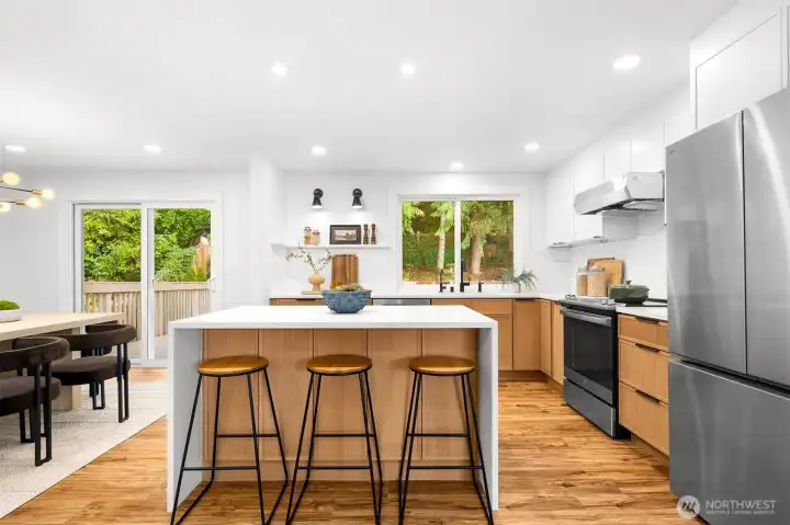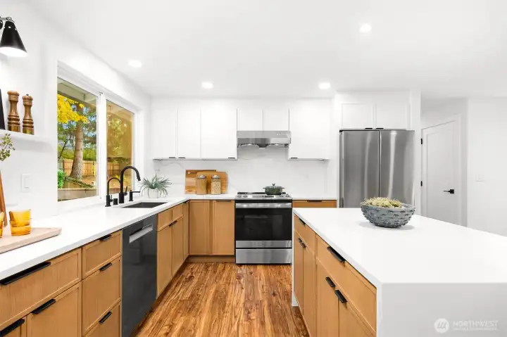 Beautifully renovated home on a quiet Education Hill cul-de-sac blending style, comfort, and functionality. 5 bedrooms in total 4 up, 1 down. The open upper level features a gas fireplace, dining area, and a stunning modern kitchen with sleek finishes and great natural light. Upstairs offers four bedrooms; the lower level adds a spacious family room with wood fireplace and a versatile 5th bedroom or bonus room. Updates include Milgard windows, fresh paint, A/C, EV outlet (30A), new driveway with RV parking, and a 600+ sq. ft. deck plumbed for gas BBQ. Fully fenced yard with generator hookup, Ethernet, and coax wiring. Minutes to downtown Redmond, parks, light rail, and HWY 520 in top-rated Lake Washington schools. Will not last!