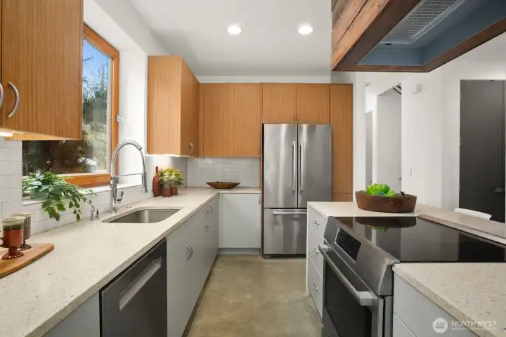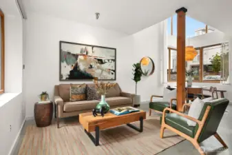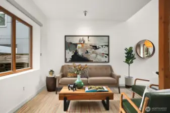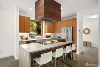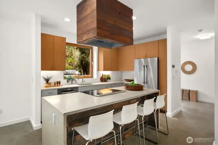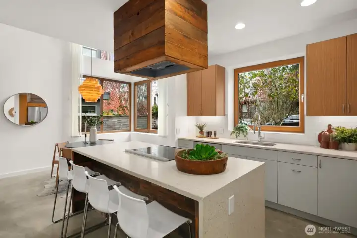 Award winning and exceptional Dwell Development build. Striking architectural design and high-performance construction with solar panels for sustainable living. This stand-alone home was the first to receive the "Built Green 5-Star Emerald certification" in Seattle. Where comfort meeting consciousness - showcasing reclaimed barn wood and aged metal siding, polished concrete floors, and vaulted ceilings with triple-pane windows. Recent updates include a new boiler system, custom kitchen cabinets, and new interior paint. Thoughtfully designed with 3 beds, 2.5 baths, a loft space and fully gated yard. Includes EV parking and a central Ballard location close to dining, shops, and parks. A rare fusion of innovation, design, and eco-luxury.