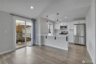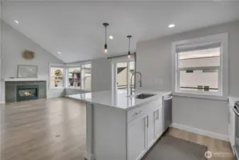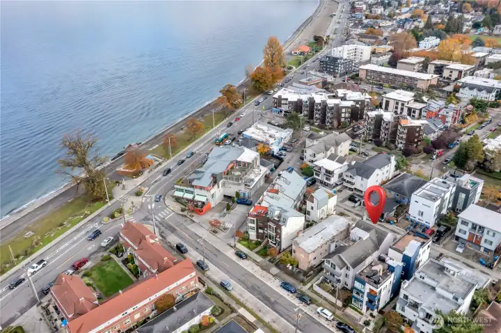 Live the ultimate beach lifestyle just steps from iconic Alki Avenue! This top-floor corner condo offers partial views of Puget Sound from the corner window & balcony. The interior has had a complete make-over from floors to ceiling, kitchen, baths and even a GAS fireplace for chilly Seattle days & nights. The beautiful kitchen has new soft close cabinetry, quartz counters, there is even a dedicated laundry room. Vaulted ceilings make for a light and bright great room space and access to the deck. Updated bathrooms, the primary featuring a walk-in shower. There is a storage closet on the ground floor and 1 parking space. Enjoy effortless commute to downtown Seattle via the West Seattle Water Taxi or transit nearby!