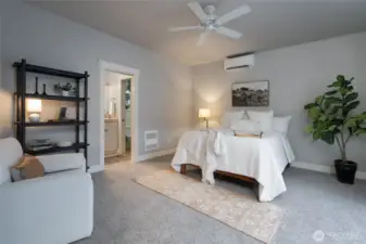 2216 35th Court is a slice of privacy in a picturesque neighborhood - long private driveway w 2 car garage when you drive in. A fenced courtyard w mature landscaping & craftsman entry greet you. As you walk in the front door you’ll find the first bedroom behind french doors w large build in bookcases. Formal living room w double sided gas fireplace & views out to the surrounding green space make it feel like you’re living in the trees. Down the grand hallway you’ll find access to the courtyard, formal dining area, kitchen w eating space & pantry. Oversized primary suite w access to courtyard & walk in closet w custom built-ins. Final bedroom could live as a second primary with full ensuite. Mini-splits, new roof & fresh paint throughout!