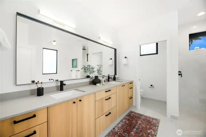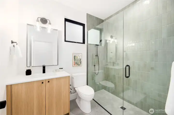 Experience modern Northwest living in this exceptional 5-bed 4-bath new construction by KaneBuilt, nestled in sought-after Bridle Trails. Designed with a perfect balance of luxury and functionality, this home features a spacious yard and a 2-car garage with EV charging. Inside, heated polished concrete floors pair beautifully with real hardwoods and sleek steel accents. The chef-inspired kitchen shines with a gas range, built-in fridge, and high-end appliances. Soaring vaulted ceilings and walls of windows fill the space with natural light, while a versatile upstairs bonus room offers room to relax, play, or work. Gather around the cozy gas fireplace or entertain effortlessly in this stylish, thoughtfully crafted home. This home has it all!
