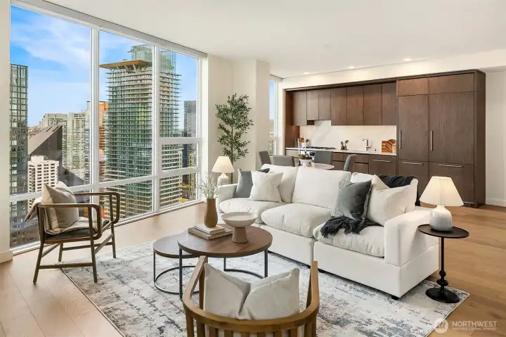 This residence defines high-rise urban living at its best—just one block from Pike Place Market, the Seattle Art Museum, and the new waterfront park. Enjoy timeless design, effortless living, and sweeping city, mountain, and water views at The Emerald. Features include floor-to-ceiling windows, walnut cabinetry, Bosch appliances, and oak floors. Amenities: rooftop deck, concierge, fitness center, pet spa, guest suite and more. Owned by Seattle's beloved non profit **FareStart**; proceeds benefit its mission to transform lives through food. Listing and marketing services generously donated: *Candi Kintzley/CoryHolland with ClarityNWPhotography*, *Joe Patterson- SeattleSoundStaging*, *Tammy Gwinn /Denise Seavitt* Realogics Sotheby’s Realty.