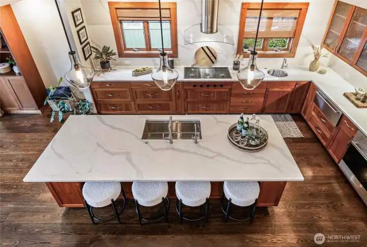 Welcome home to your Mercer Island Point of View-Soak up iconic Northwest water and mountain views from this north-end residence—4,175sf of light-filled living with four bedrooms (two primaries with one on the main level) and four baths. Freshly updated with new kitchen including Wolf oven, microwave & gas cooktop the home blends classic design with modern comfort. An oversized lower level offers endless flexibility—perfect for multigen living, guest quarters, or a dream rec space. New Ipe deck to enjoy the expansive views. With the Shore Club a couple blocks away—lake access, moorage, tennis, fitness, & social life are at your doorstep. All minutes from dining, shopping, parks & award-winning schools. Lifestyle. Location. Legacy.