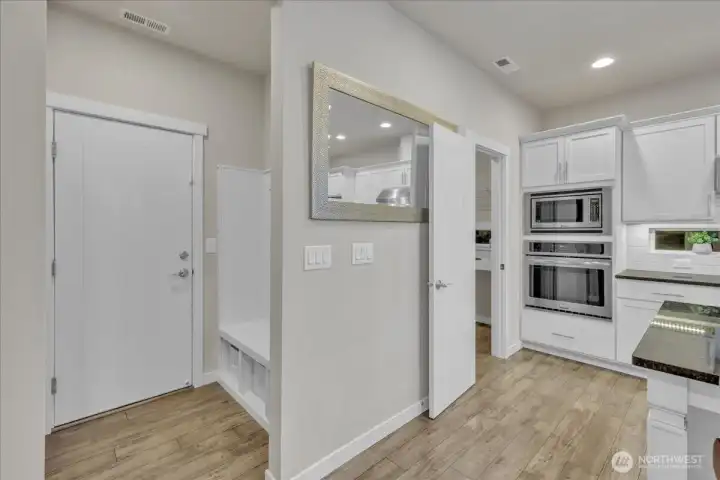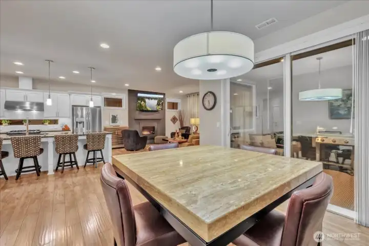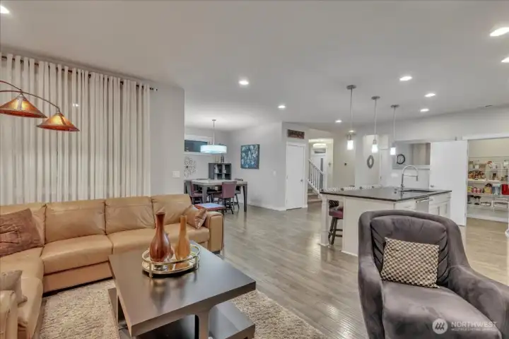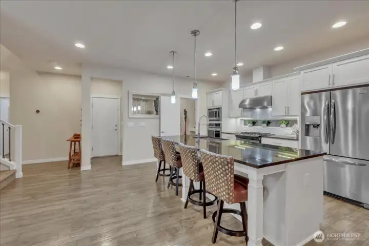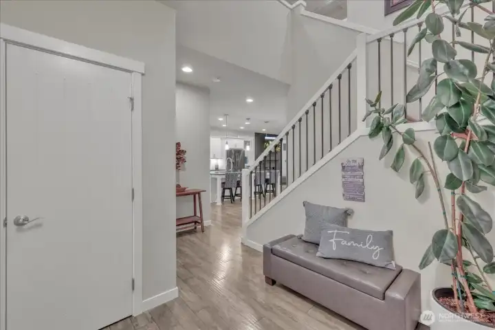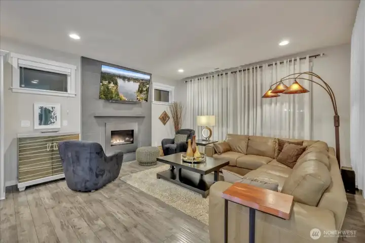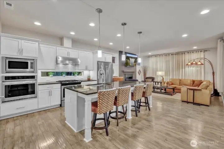 Star Lake community with private lake access, open green space and playground. Beautifully upgraded home equipped with AC, offers and open-concept design featuring a gourmet chef's kitchen with a 9' slab granite island, double ovens, a walk-in pantry, and plank flooring throughout the main floor. The great room centers around a floor-to-ceiling tiled fireplace, while the primary suite features a barn door and spa-like bath with 6' shower. Enjoy year-round outdoor living with a covered deck, stairs leading to a fenced backyard, and a covered patio. Additional highlights include a large loft, custom blinds and molding. Situated at the end of a quiet lane with neighbors on just one side-minutes to I-5 and the new Star Lake Light Rail Station!
