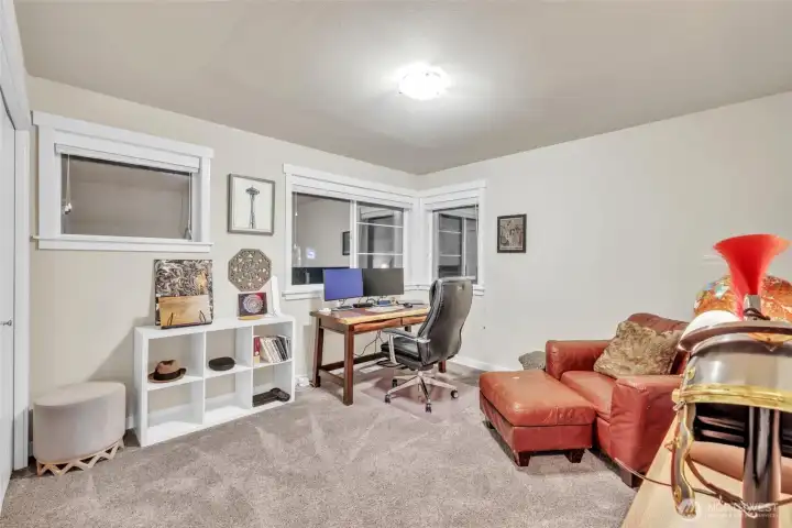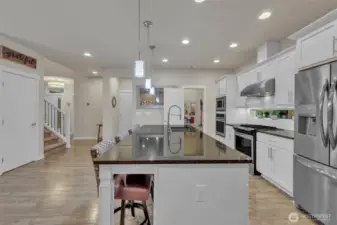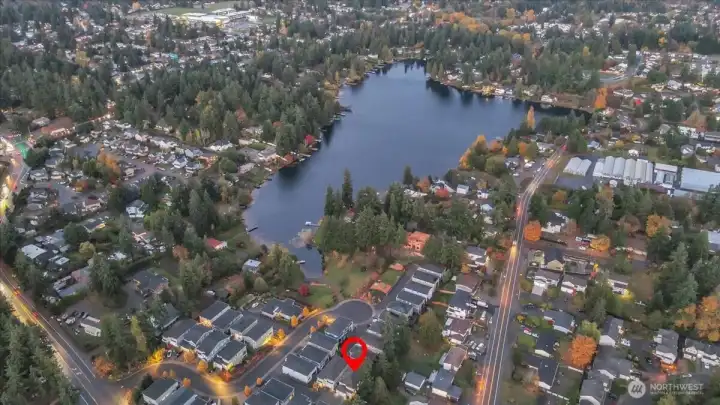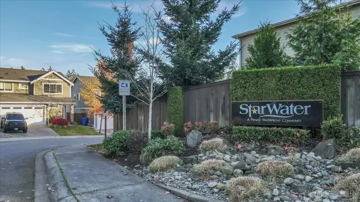 StarWater community of 34 homes by Lungren Homes, on the western shore of Star Lake with private lakefront park, dock access, and park grounds. A 3-bedroom plus loft home equipped with AC, offers an open-concept design featuring a chef style kitchen with custom cabinets, 9' slab granite island, double ovens, walk-in pantry, and plank flooring throughout main floor with floor-to-ceiling tiled fireplace. The primary suite features a barn door and spa-like bath with 6' shower. Enjoy year-round outdoor living with a covered deck, stairs leading to a fenced backyard, and a covered patio. Situated at the end of a quiet lane with neighbors on just one side. Only minutes to I-5 and the new Star Lake Light Rail Station! Home has been pre-inspected.