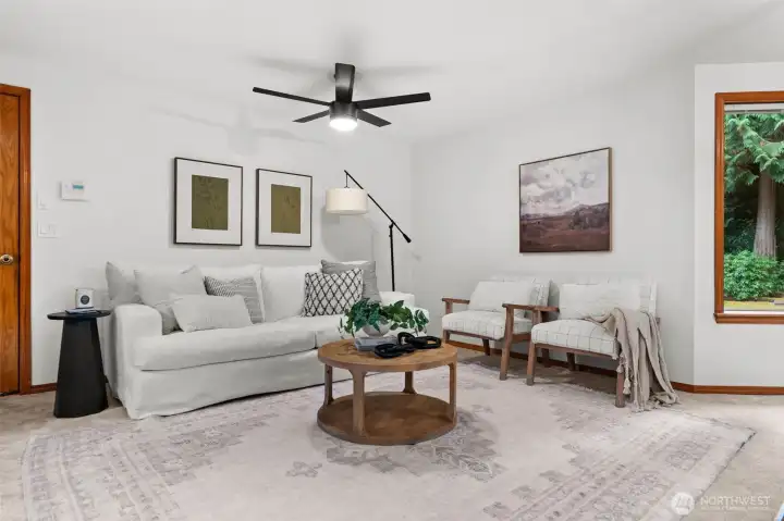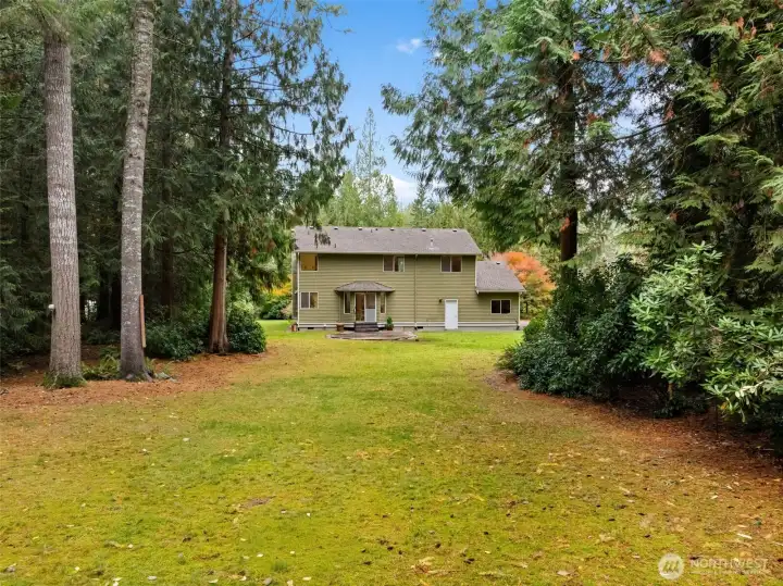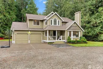 Move-in ready! Beautifully maintained & updated 4-bedroom home on nearly an acre of flat, park-like grounds right next to the peaceful trails of Banner Forest. Fresh interior paint, new carpet, and updated lighting throughout. The open-concept kitchen and family room overlook the private backyard—perfect for relaxing or entertaining. Situated on a quiet dead-end road, this home offers privacy, mature landscaping, circular driveway and plenty of outdoor space to enjoy. Large spaces to add additional covered RV Parking or a shop. For those commuting, the property is conveniently located minutes from ferry & hwy 16.