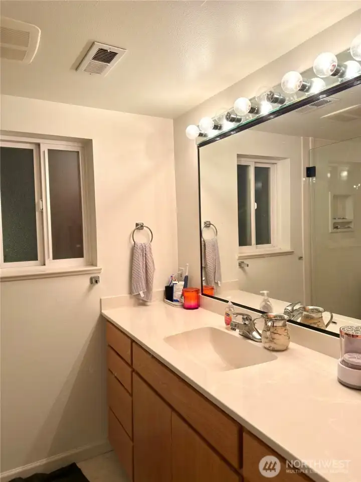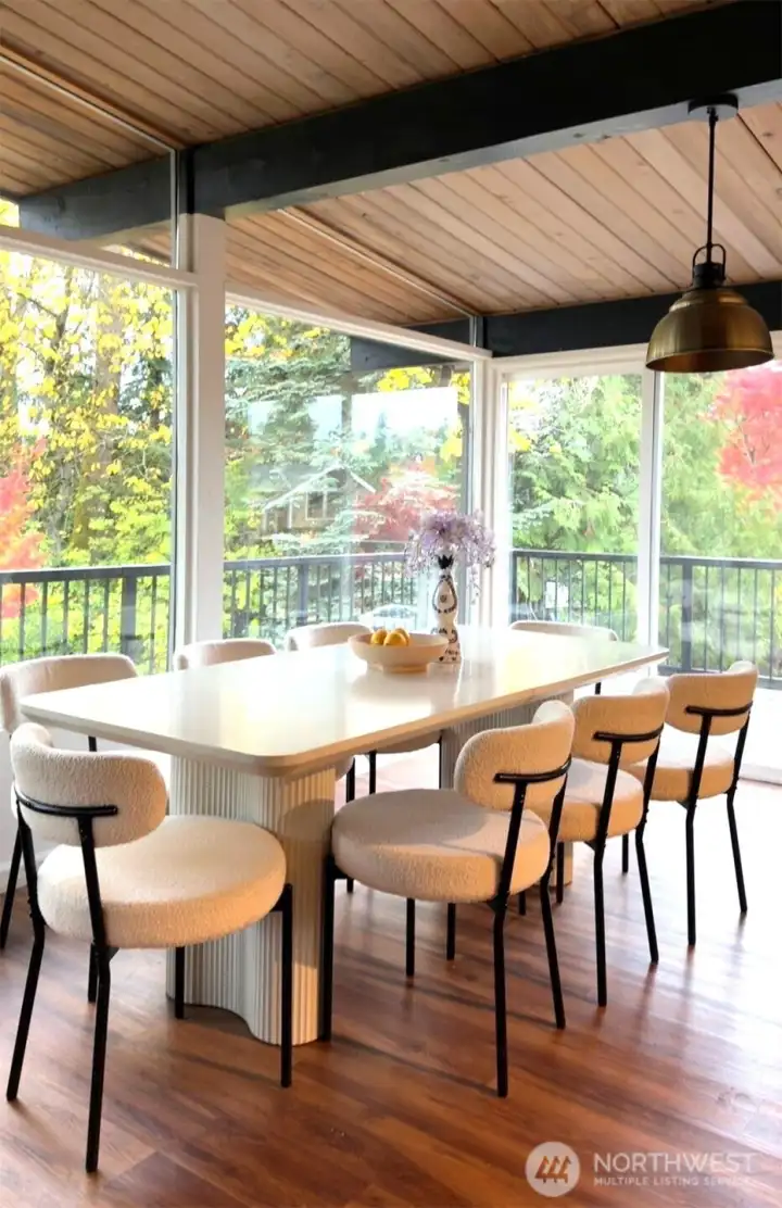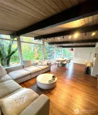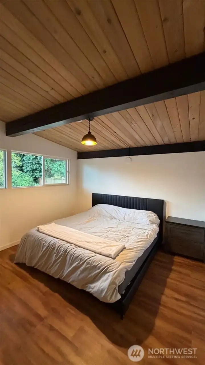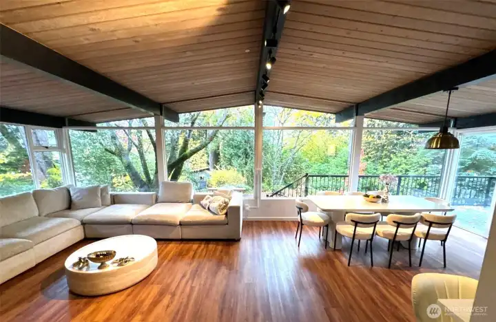 Timeless 1959 mid-century residence in Lower Kennydale, set on a private park-like lot. Beautifully refreshed with a remodeled kitchen, modern appliances, new LVP flooring, interior paint, and upgraded systems including a new furnace, heat pump with AC, and updated electrical panel and meter. The main level offers 3 bedrooms and 2 baths, large open living room, dining room and kitchen. The daylight basement extends the living space with a flexible family room (currently used as a bedroom), 3/4 bath, and a walk-in closet. A one-car garage with shop area, and a 2-car carport and extra storage. R6 zoning adds investment or development potential. A perfect blend of mid-century character and modern comfort just minutes from Lake Washington.