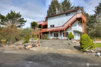 Large downstairs full apartment with private entry included in this 3 Bedroom, 2.75 Bathroom custom built home. Designed with ample room for multi-generational living, or use for nightly/long term rental many unique possibilities. Perfect floor design w/ 2 bedrooms, bathroom, kitchen and living room all on the main floor. Primary Bedroom & Bath w/ double vanity, soaker tub, shower, & walk-in closet on top floor w/ a catwalk leading to large Deck for enjoying views of Conner Creek, river otters, blue heron, geese. Cedar trim and many windows contribute to the character of this home located at the end of a private road. Approx. 300ft to drive on beach access road. New Roof 12/2019; Siding in 2014; Septic in 2011. RV parking with all hook-ups.