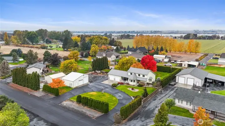 Beautifully maintained 3,943sq ft 2-story home w/ spacious basement, mature landscaping, & finished shop! Main floor features a kitchen w/ beautiful new counters, island cook-top, and built-ins, + a dining area with bay window and stained wood trim. Main-floor primary suite includes dual sinks, jetted tub, and walk-in closet. Upstairs offers 2 large bedrooms and a full bath. Basement has partial finish with built-ins, bar rough-in, and additional bedroom. Stunning covered breezeway connects the house and garage and provides a perfect outdoor sitting area. Backyard boasts a pergola patio, fire-pit area, RV parking with dump, and a fully finished 2-car garage. The detached insulated shop has 220 power, bath, loft storage, workbench, and bath.