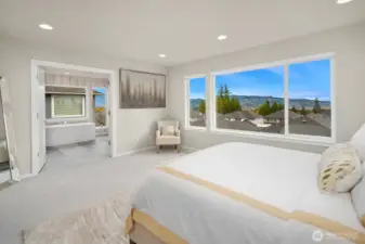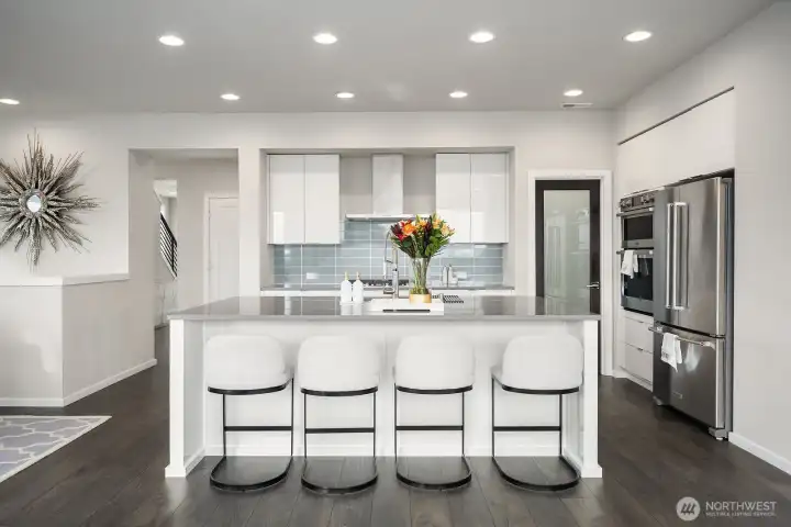 Elegant 3-story home designed for modern living and entertaining effortlessly with Gourmet Kitchen, 3cm Quartz counters, Stainless Steel appliances, LED lighting, and wide-plank flooring. The basement level features the Recreation Room, Guest Room, Full Bath, and a Covered Patio, leading to spacious back and side yards. Upstairs, find the luxurious Grand Suite with a walk-in Dressing Room, free-standing tub, frameless shower, and dual quartz vanities, plus 2 additional bedrooms, bathroom, and leisure room. A/C . Mount Rainier views! Close to schools, shopping, restaurants, and easy access to Highways 2 & 522. Style, comfort, and space in one beautiful home!