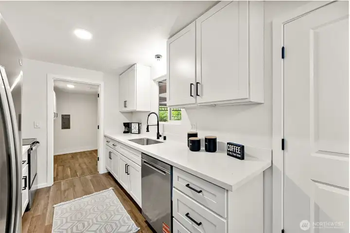This Beautifully RENOVATED 4bd/1.75bth rambler is bright, spacious & open w/Fresh int/ext paint, new Luxury Vinyl Plank flooring, windows, trim/doors & more! Stunning Kitchen w/New white shaker soft-close cabinets, quartz countertops, SS appliances! Nice size Living rm w/Cozy fireplace. Great size yard w/Mature landscaping, COVERED patio & lots of room to play, garden & entertain! Spacious 2 car garage, RV Parking w/separate entry from the street. Brand New Roof & Gutters, Newer Water heater. No HOA! Walk to schools, min to 512 & I-5, close to JBLM, PLU, Spanaway Lake, shopping, restaurants, recreation& more! This home is truly special, must see!
