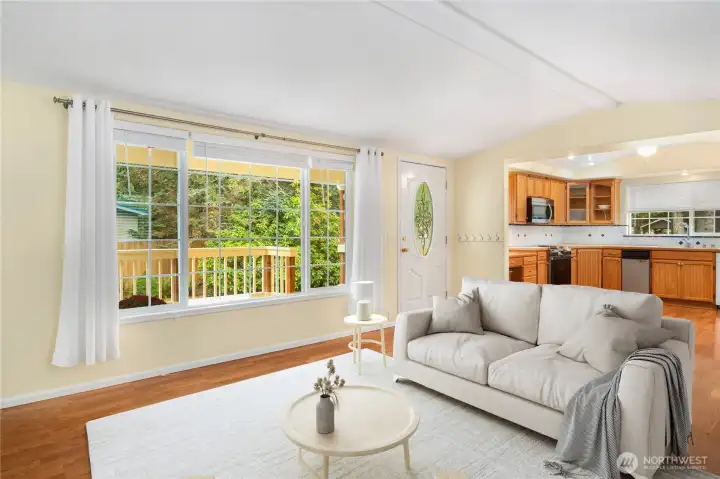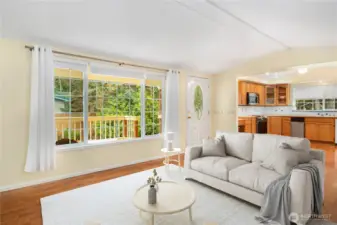 Remodeled 2-bedroom manufactured home. Inside this well-kept home, you'll find a roomy open floor plan with vaulted ceilings & an inviting atmosphere. Spacious kitchen has generous counter space & easy access to the back deck—perfect for entertaining or enjoying your morning coffee. The main bedroom includes a full bath, while the 2nd bedroom offers flexibility for guests, an office, or hobbies. Enjoy the large partially fenced yard & two front decks—ideal for gatherings. A 1.5-car garage with an attached 143 sf shop provides ample space for parking, storage, & projects. The large driveway accommodates guests or recreational vehicles with ease. Near Dosewallips State Park, Pleasant Harbor Marina, & the beauty of the Olympic National Forest