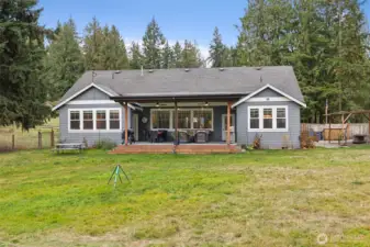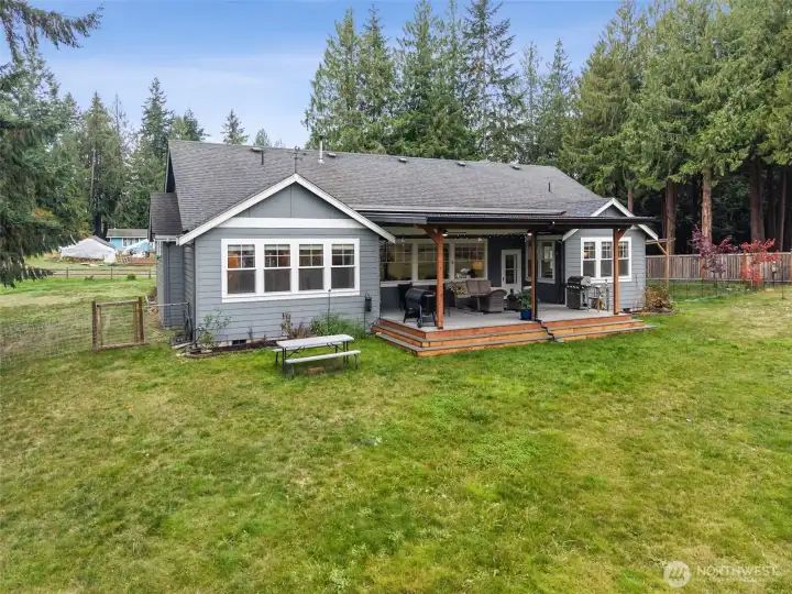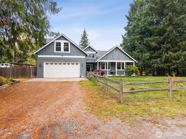 RARE Bonney Lake opportunity! | Nearly 1.5 acres of privacy & peaceful living just minutes from town | This beautifully updated home blends comfort & function w/ quartz counters, custom cabinetry & engineered hardwoods throughout | Enjoy an expansive covered deck overlooking fenced gardens, a 10x30 greenhouse, raised beds & lush pasture views | Every garden zone is sprinklered for ease, plus a 12x16 storage barn ready for tools or hobbies | Wake up to sunlit fields, unwind in the quiet of nature, & still reach Costco, shopping & dining in minutes — the best of both worlds: private country living close to everything | Bonney Lake-Sumner School District