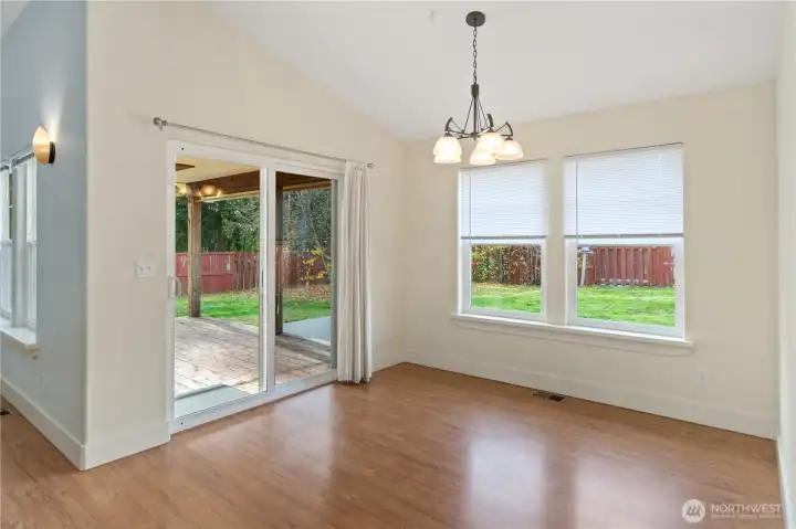 Well-built and well-kept one-level home in a neighborhood of nice homes! This 3-bedroom gem features vaulted ceilings and a spacious kitchen with a new refrigerator and microwave that opens to the dining room with double doors leading to a large back deck—visible from both the dining and living rooms. Enjoy a nicely landscaped, fully fenced yard, a front deck for relaxing, and a patio for outdoor gatherings. The primary suite offers an en-suite bath with double sinks and a walk-in closet. A separate utility room and 2-car garage add convenience. Close to schools, library, shopping, restaurants, and parks!