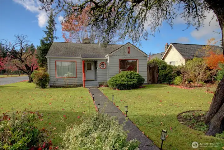 Charming 1940 bungalow across from Hillcrest Park. Coved ceilings, large windows, and fresh interior paint make this home bright and move-in ready. Enjoy one-level living with an extra bedroom upstairs for guests or hobbies. Discover the hidden hardwoods in main floor bedrooms, a rare Frigidaire Flair stove, original glass doorknobs and more. Private covered patio area and a fully fenced backyard extend your outdoor time. Move in ready but space for quick equity too. A detached garage offers both parking and workspace, new exterior/ interior paint and electrical rewire in 2019. Enjoy the pickleball, basketball, playgrounds and trails across the street at Hillcrest Park. Easy and close access to I-5, hospital, schools and downtown.