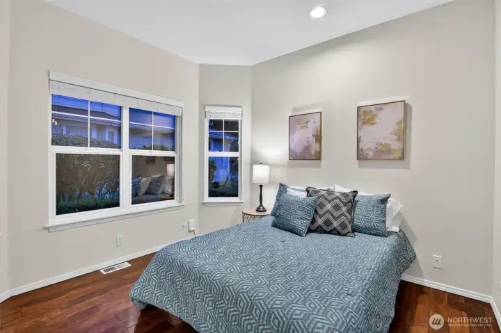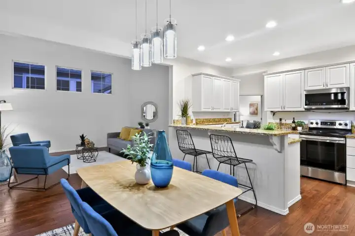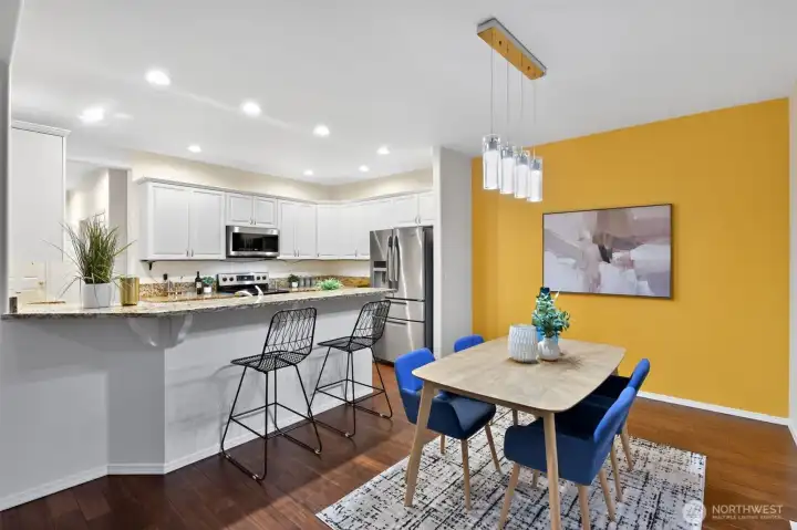 Experience this stunning Redmond townhome, perfectly positioned in the city’s vibrant heart. Boasting a sunlit, open-concept layout with just one shared wall, it provides the privacy and comfort of a standalone residence. The sophisticated living room features soaring ceilings, while the modern kitchen with granite countertops overlooks a fully fenced backyard ideal for gatherings. The main floor room can be used as a bedroom or den. The primary suite offers a vaulted ceiling and luxurious 5-piece bath, plus a generous guest suite upstairs. Recent updates include new interior paint and master bathroom flooring. Conveniently near Costco, Whole Foods, Microsoft, Google, and Nintendo. No rental cap.