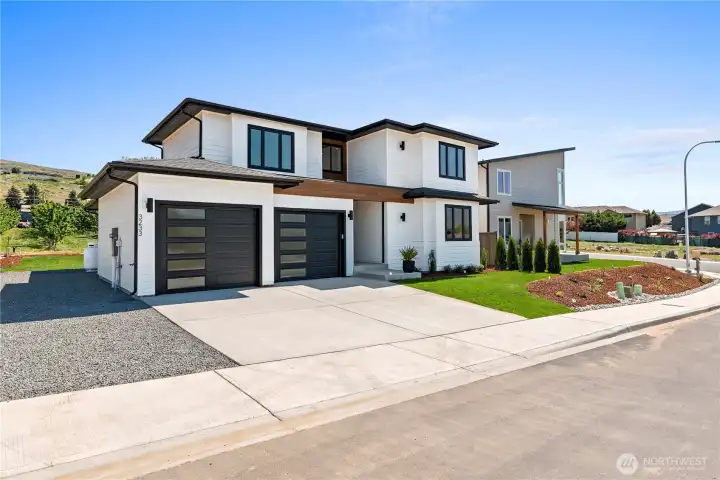 Sleek contemporary design meets everyday comfort in this newly completed luxury home. The open-concept main level showcases a chef’s kitchen with KitchenAid appliances, cherry cabinetry, quartz counters, and designer lighting. Enjoy indoor-outdoor living with a spacious covered patio and a main-floor primary suite featuring dual closets, soaking tub, and oversized shower. Convenient main-level laundry with folding counter. Thoughtful details throughout, from tile backsplash to curated finishes. Extra 60’ x 11’ parking area accommodates RV or boat. Located just blocks from the scenic Wenatchee Loop Trail, offering easy access to Pybus Market, downtown, and the riverfront.