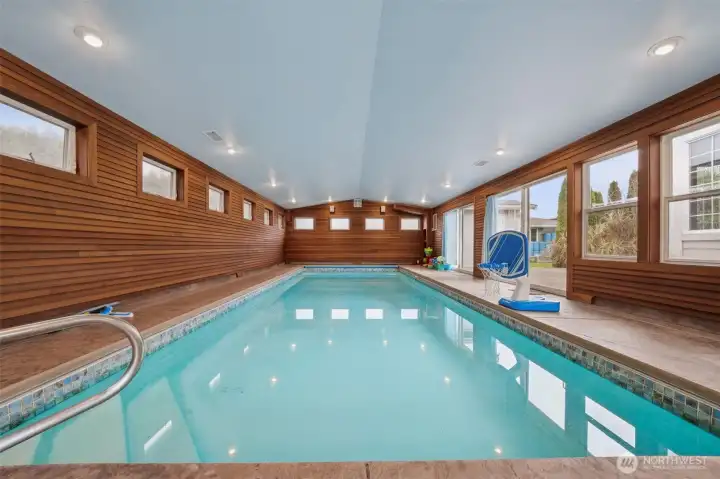 Spacious home in the Sumner community W/Mountain Views! Fresh interior paint, new carpet, & new laminate flooring throughout. Formal living rm W/cozy FP & wood-wrapped windows. Gourmet kitchen W/large island W/sink, double oven, ample cabinetry & window overlooking back patio. Upstairs, the primary suite showcases bay windows W/stunning Mt. Rainier views, WIC, & 5-piece bath. 3 addtl bedrooms & full bath + a main floor den/office for added flexibility. HUGE indoor lap pool & jacuzzi — perfect for year-round enjoyment! Outside, the fully fenced backyard offers mature garden beds & extended patio ideal for entertaining. Utility room W/sink & storage. Easy access to downtown Puyallup/Sumner & Easy access to HWY 410, 512 & 167.