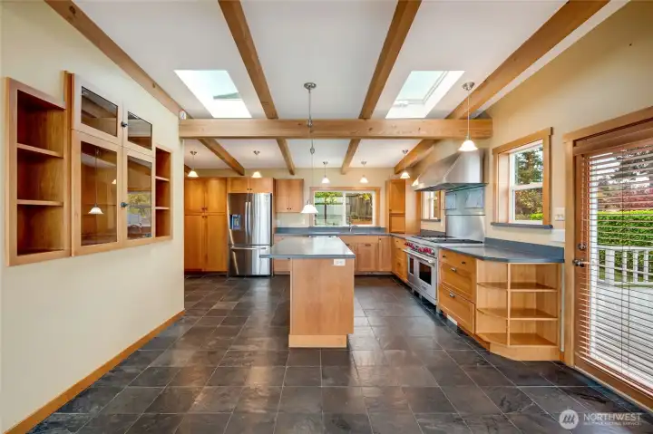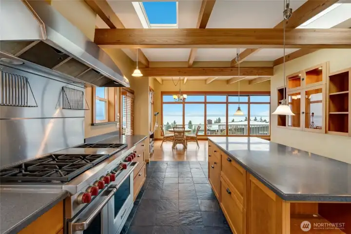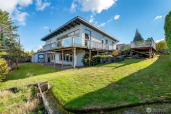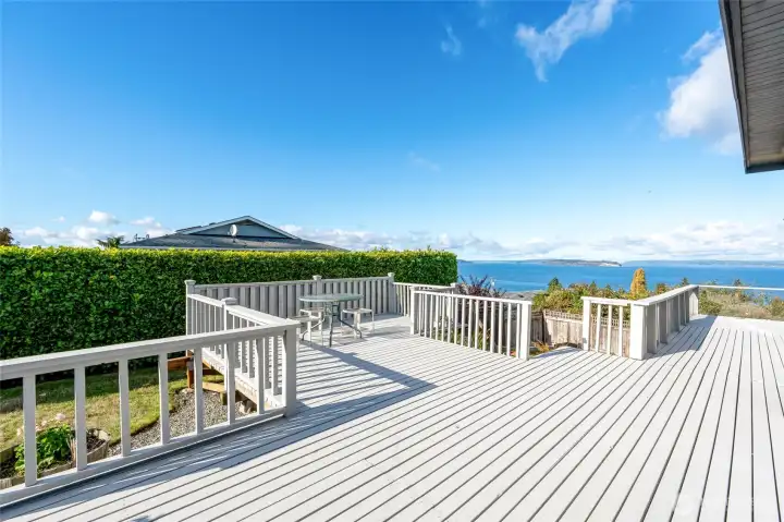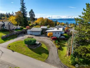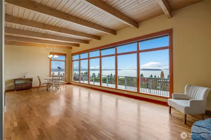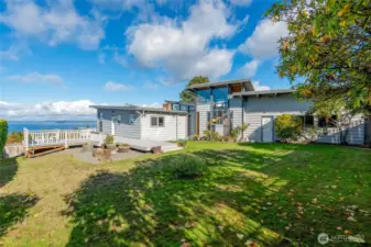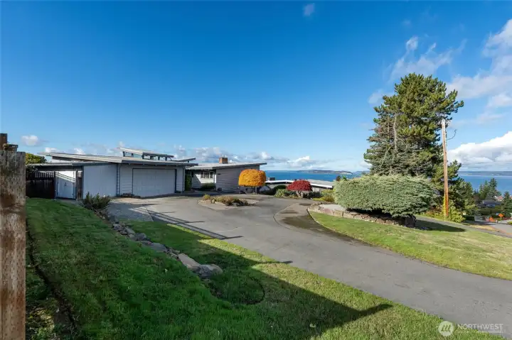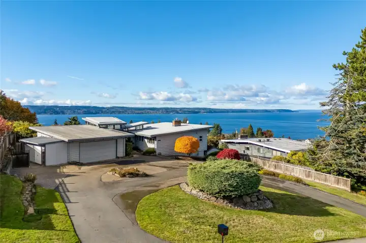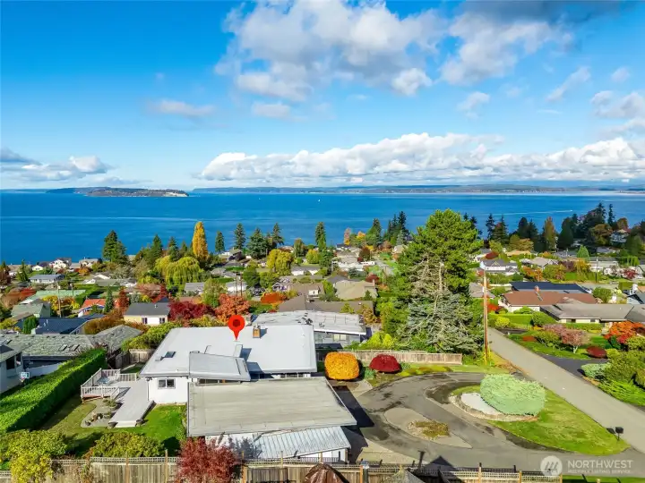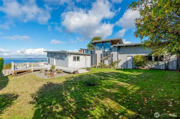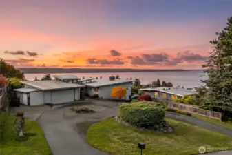 Experience timeless mid-century design paired with sweeping Puget Sound & mountain views in this 2,848 sq ft Everett retreat. Floor-to-ceiling windows frame stunning sunsets & fill the open living space with natural light. Exposed beams & a sleek, chef-inspired kitchen with six-burner gas cooktop & heated tile floors make entertaining seamless. Step out to the expansive deck for gatherings or quiet moments overlooking the water. Three bedrooms & two baths on the main floor allow for true rambler living. Spacious basement with rec-room, laundry, & additional finished rooms. Situated on a 15,246 sq ft lot, this home offers a spacious circular driveway, attached two-car garage, & the perfect blend of style, function, & Northwest charm.
