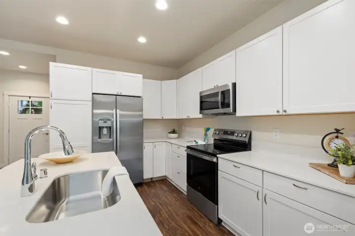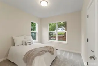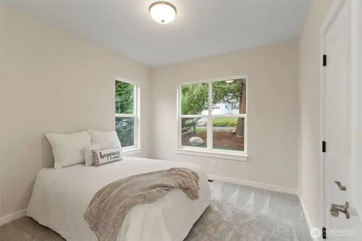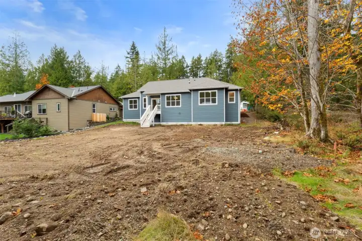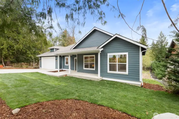 The best of single floor living in Port Ludlow's North Bay community. This brand new home is move-in ready! A fabulous floor plan with loads of flexibility for living, working and entertaining. 3 bedrooms, plus a den/office in 1,703 square feet. Open concept with vaulted ceilings in the living room and charming electric fireplace. This home lives large! The primary suite is tucked privately on one side of the home with the other two bedrooms and full bath on the other side of the great room. All appliances included, quartz countertops, heat pump, & luxury vinyl plank floors in some areas. Large, sunny, yard you can fence. Low monthly dues include membership in the North Bay Club: fitness center, pools, tennis, pickle ball & more!