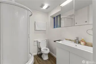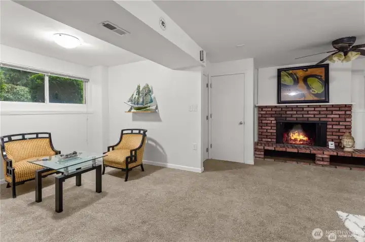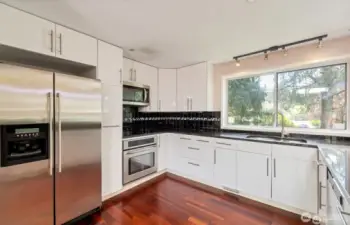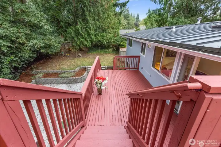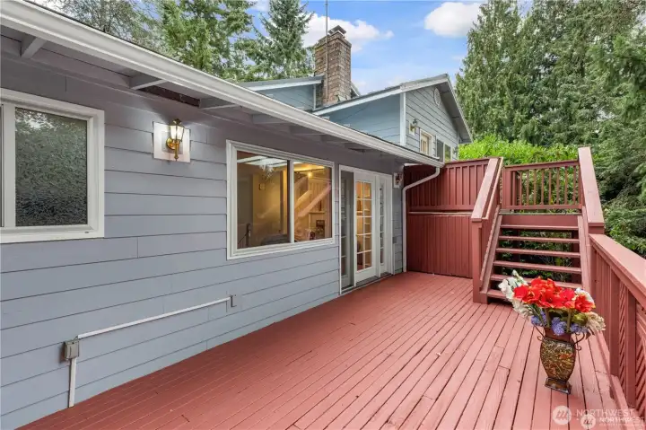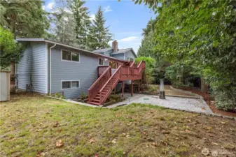 Beautiful residence showcasing Brazilian cherry hardwood floors, freshly painted white millwork, modern fixtures, and double-pane windows encased in wood. Elegant formal living areas boast a wood-burning fireplace with a granite surround, custom built-in shelving, skylights, and a luminous kitchen adorned with granite countertops, tiled backsplash, and stainless steel appliances. The master bathroom features a tiled shower, while the main bathroom offers a luxurious jetted soaking tub. Additional amenities include an upstairs bonus room and a lower level recreation room, catering to diverse lifestyles. Outside, a stamped concrete patio and spacious deck overlook a fenced yard, complete with a play structure and more!