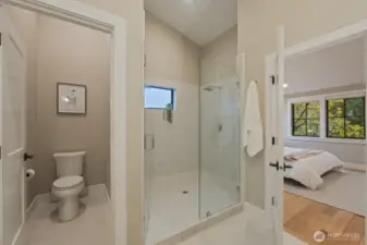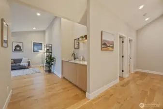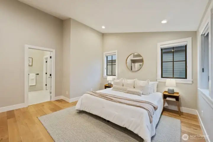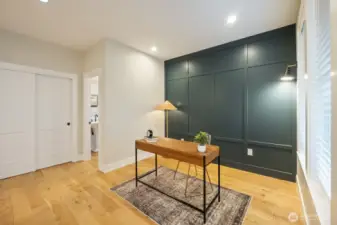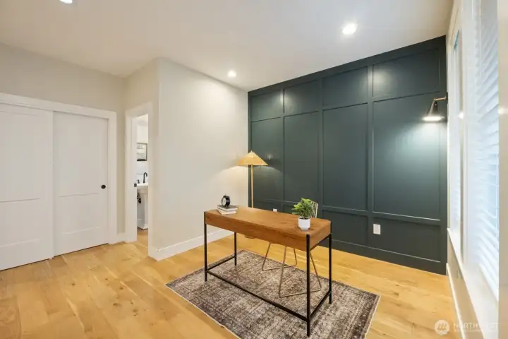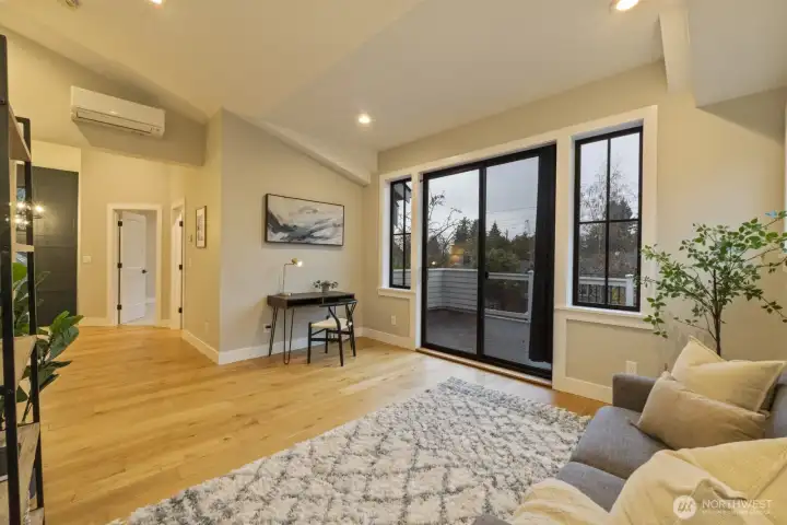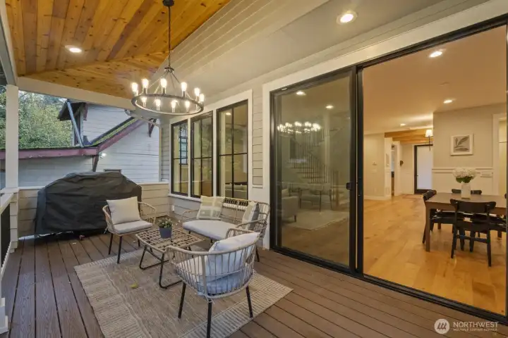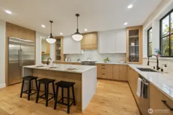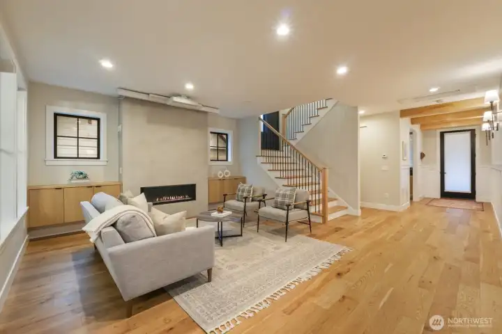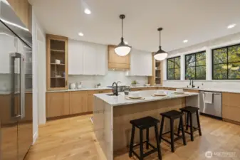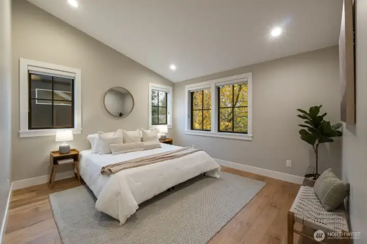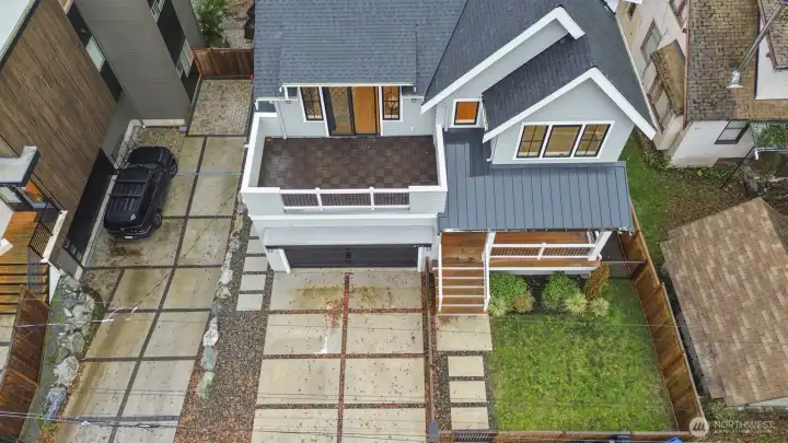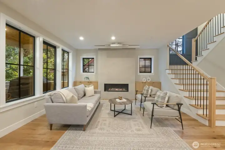 Like-new 2023 contemporary Craftsman, peacefully backing to Fairmount Ravine but a block from California Ave's Safeway, shops, restaurants – walkable but incredibly serene. Covered porch leads into the entry hall where you’re greeted by a great room with wide plank brushed oak floors, a wall of windows and a beautiful woodlands view. Gourmet kitchen with butler’s pantry, center island, plus loads of storage and counter space. Built in projection TV with gas fireplace, built in cabinetry, and a covered deck to enjoy the view. Upstairs, open family room with wet bar & deck access, 3 beds plus office, laundry & full bath. Private primary suite with stunning bath & walk-in shower. Lower level could be ADU with 2 beds, living, & kitchen.