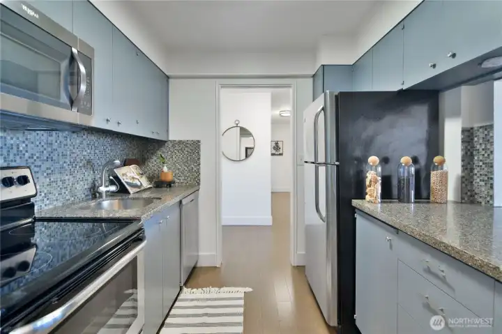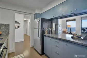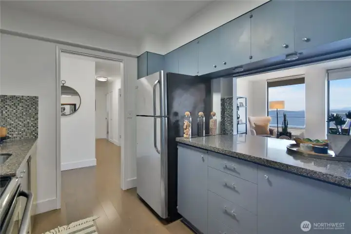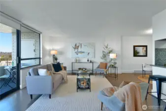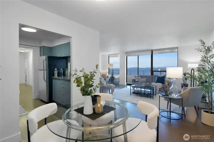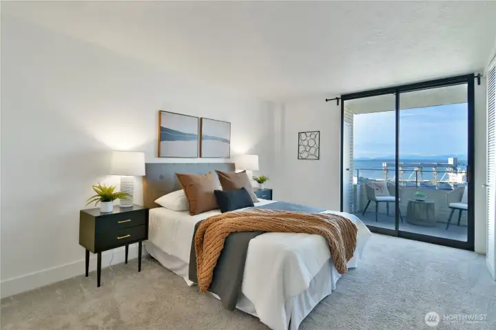 Perched above Elliott Bay with sweeping water & Olympic Mountain panoramas, this bright, refined Uptown condo captures quintessential Seattle living. Enjoy morning coffee on the expansive patio while watching ferries or spotting whales. There are two storage units on the private patio, as well as a garage locker near your designated secure parking. Relax in complete comfort with secure building entry, air conditioning & a generous primary suite offering a wall-to-wall closet and private deck entry, facilitating a restful retreat with breathtaking PNW views. Steps to Mercer Street’s shops in Queen Anne and an easy stroll to the Space Needle, this residence pairs breathtaking vistas with unmatched convenience for an idyllic Seattle lifestyle.