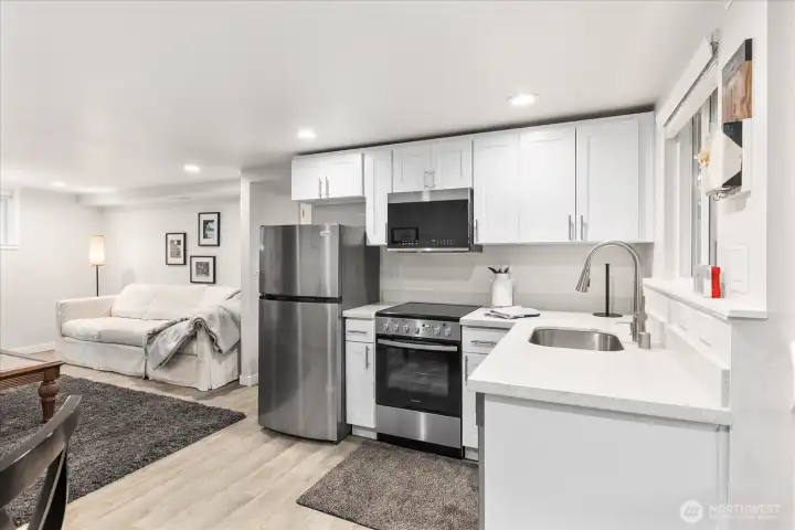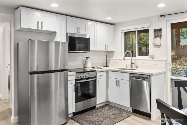Discover exceptional living in the quiet Renton Highlands community! This beautifully renovated 5-bedroom, 3-bathroom (1 full, 1 half, 1 3/4) split-entry home sits on a spacious 13,365 sq ft lot, just one block from natural woods for walking and biking. Meticulously updated and inspected, enjoy the peace of mind of a New Roof (2024), New Fence (2025), and fresh paint inside and out. The entire home was renovated in 2024, featuring engineered hardwood, ceramic tile, and a gas fireplace. Designed for functionality, the home includes an accessible approach, entrance, kitchen, bath, and utility, plus a desirable second kitchen, walk-in closet, and a 2-car carport. Potential rental income with current tenants.