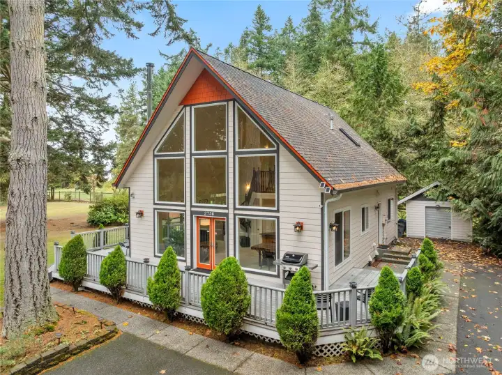 Welcome home to Fox Paws Cabin! This light and bright custom home sits on a double lot just two blocks from the beach, boasting soaring ceilings, a dramatic wall of windows, and a seamless indoor-outdoor flow. Enjoy rich Brazilian cherry floors, a chef’s kitchen with granite counters and stainless appliances, and a wraparound deck overlooking a serene park-like setting where deer and songbirds are daily visitors. Relax by the wood stove, soak in the hot tub, enjoy a fire outside, or explore the nearby Wildlife Preserve. Upgrades include a new heat pump for year-round comfort, and a complete exterior repaint in 2022. Whether a full-time residence or a vacation getaway, Fox Paws Cabin captures the very best of Pacific Northwest living!