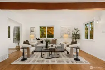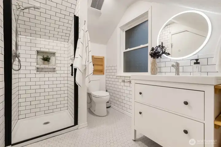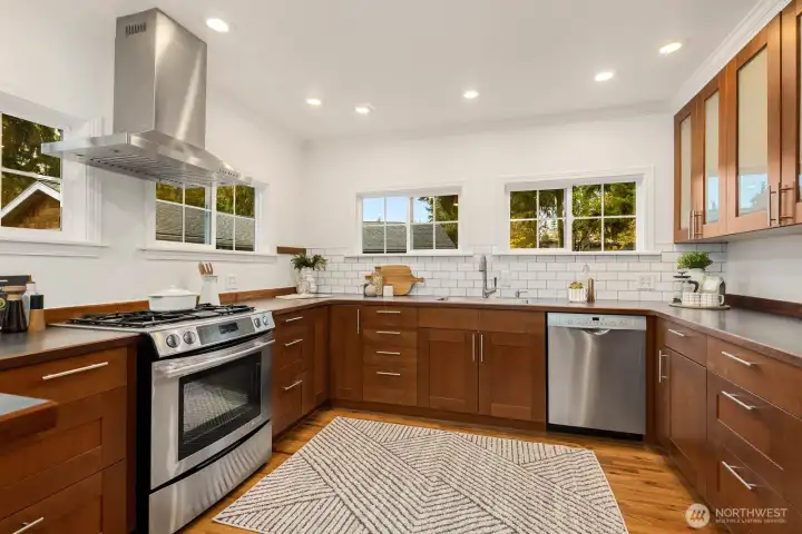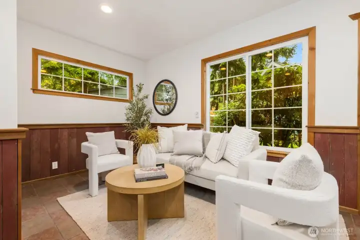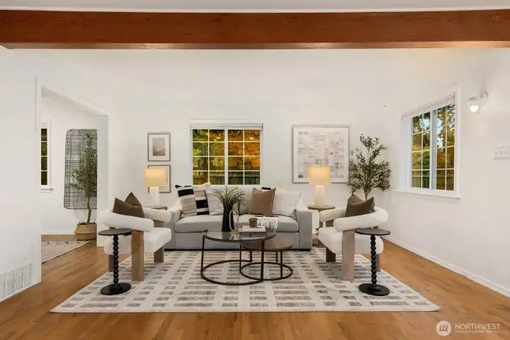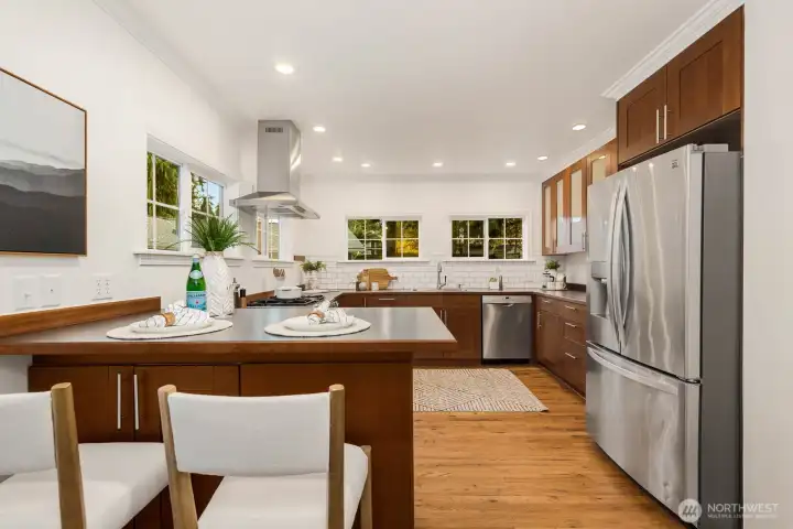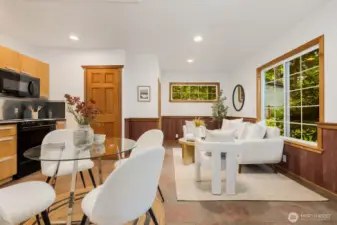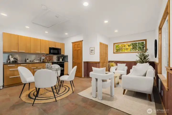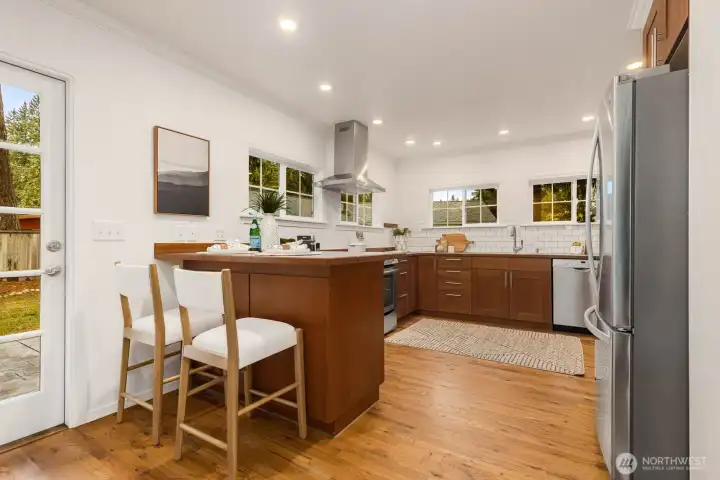 This one-of-a-kind Meadowdale gem commands attention on sprawling private grounds, fully fenced for ultimate seclusion and tranquility. The gleaming hardwood floors and exposed beam ceilings to a modern kitchen boasting a breakfast bar, stainless steel appliances, and warm wood cabinets. Bedrooms feature vaulted ceilings, while the primary suite offers a serene retreat with gorgeous subway-tiled bath. The true star of the show is the DADU—versatile 400 sq ft with full kitchen and 3/4 bath with an attached shop. The park-like yard with lush landscaping, a charming patio, and plenty of room for RV or boat parking. Just steps to Meadowdale Elementary, Middle, and High Schools and mere minutes from downtown Edmonds' shops and waterfront dining.