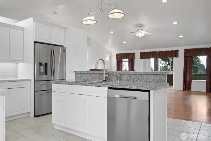 Quality craftsmanship shines in this beautifully maintained home offering desirable main-level living! Enjoy an open, light-filled floor plan featuring hardwood floors, large windows that capture abundant natural light, and a well-appointed kitchen with stainless steel appliances. The spacious primary suite offers comfort and style with a heated tile floor and a luxurious en-suite bath. The partially finished basement provides endless possibilities — plus exceptional storage space and room for a large shop. A home built with care and attention to detail, ready for you to move in and enjoy!