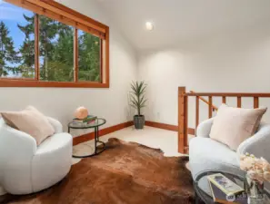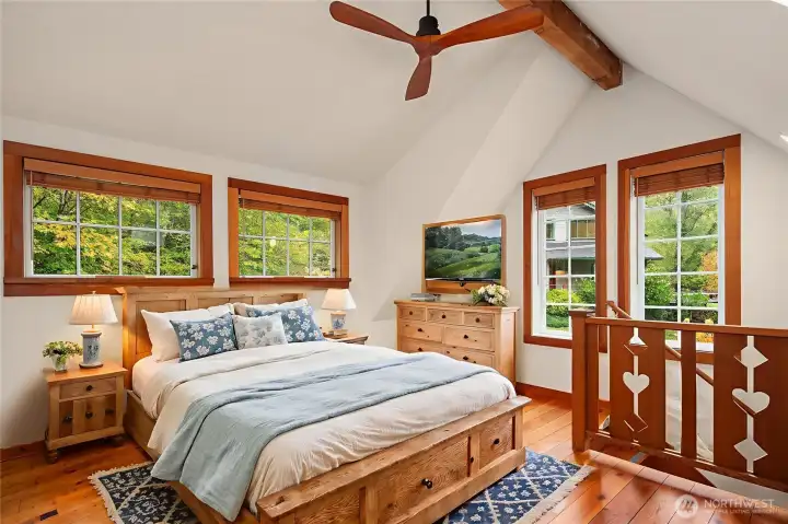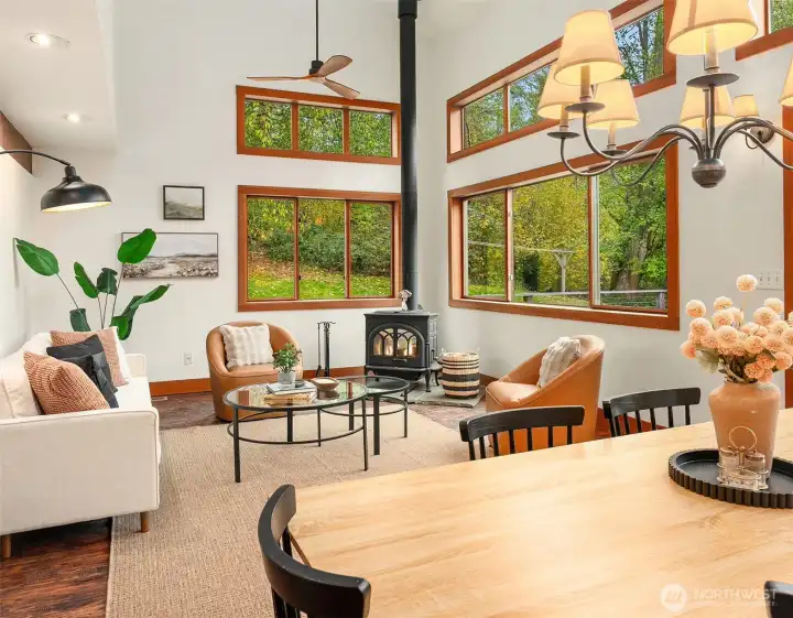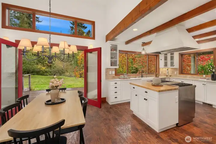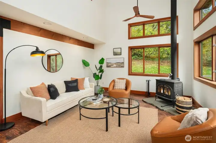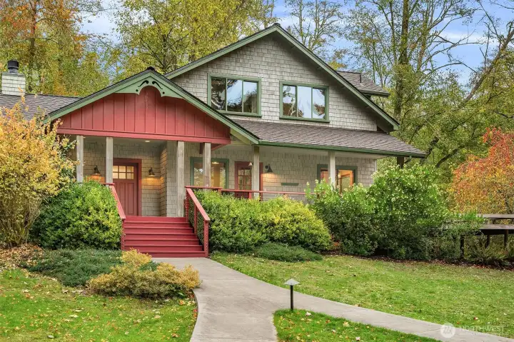 Set amid 14+ acres of pristine Northwest forest, this private enclave offers a rare blend of natural beauty and contemporary design. The gracious covered entry invites you into light-filled interiors where elegance meets modern comfort. French doors open to an expansive ironwood deck overlooking a private paradise framed by fruit trees & mature landscaping. The main-level primary extends outdoors to a private patio, hot tub & shower. High-end finishes ensure ease and sophistication, while modern amenities promise efficiency & comfort. The precious woodland cottage & 3 car garage + studio complete this extraordinary offering. Centrally located between downtown, schools, and the beach, delight in quiet abundance and comfort on Vashon Island!