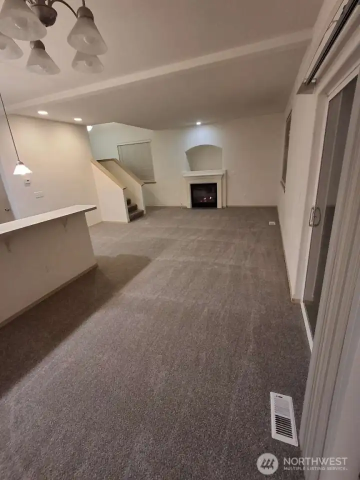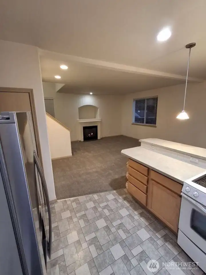 1746 sq ft home new carpet living area greatroom , New professional interior paint.4 bed 2 1/2 bath w/ large primary bedroom including private water closet,linen closet ,his and hers wardrobe closets, double sinks, tub shower combo.Downstairs great room has a Gas Fireplace high cealings sliding glass doors to patio pad w/ no rear neighbors.Kitchen has a Jenn air electric grill/ range, New sink, faucet ,garbage disosal, dishwasher fridge and carpet in 2019.Pantry with man door next to kitchen. indoor laundry, room and1/2 bath next to door to garage downstairs.New garage door Oct 2025. Locking Pella glass storm door on front door.