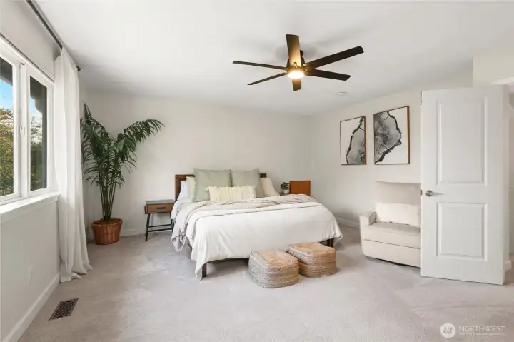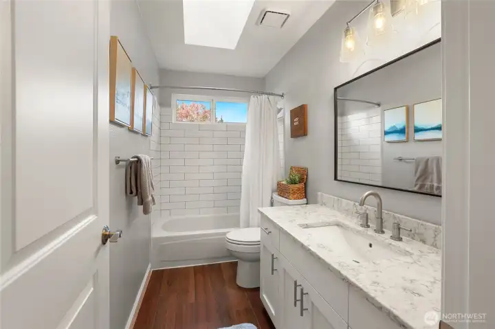 Beautifully updated home in the desirable Cathcart community on a private 1.28 acre cul de sac lot. This spacious 2,540 sq ft layout offers 3 bedrooms plus a dedicated office, 2.5 baths, vaulted ceilings, skylights, hardwood floors, and modern finishes throughout. The kitchen features stainless steel appliances, walk in pantry, ample storage, and an eating area that opens to the family room with a gas fireplace. The primary suite includes a full bath and walk in closet. Central AC for year round comfort. Outside, enjoy a large deck for entertaining, garden space, and room to play. High speed internet, 3 car garage, and located in top rated Snohomish schools including Glacier Peak. The perfect blend of privacy, comfort, and convenience.