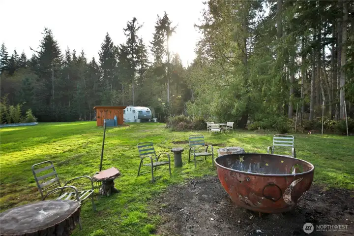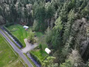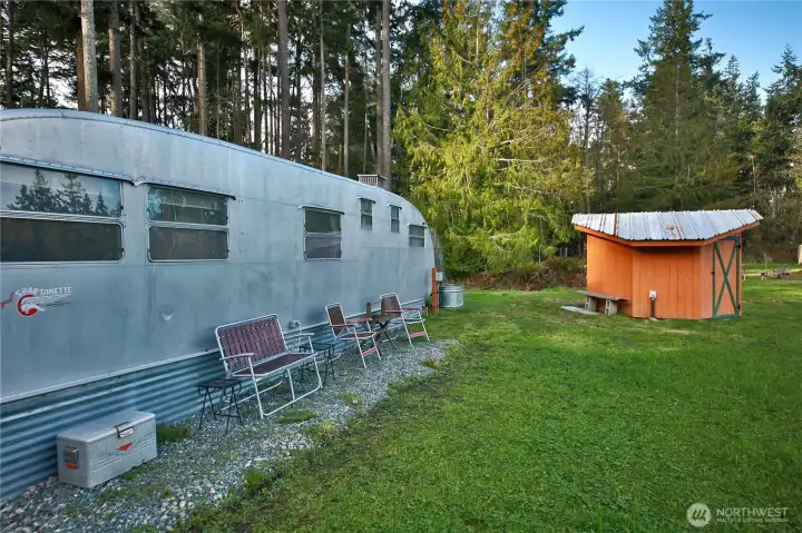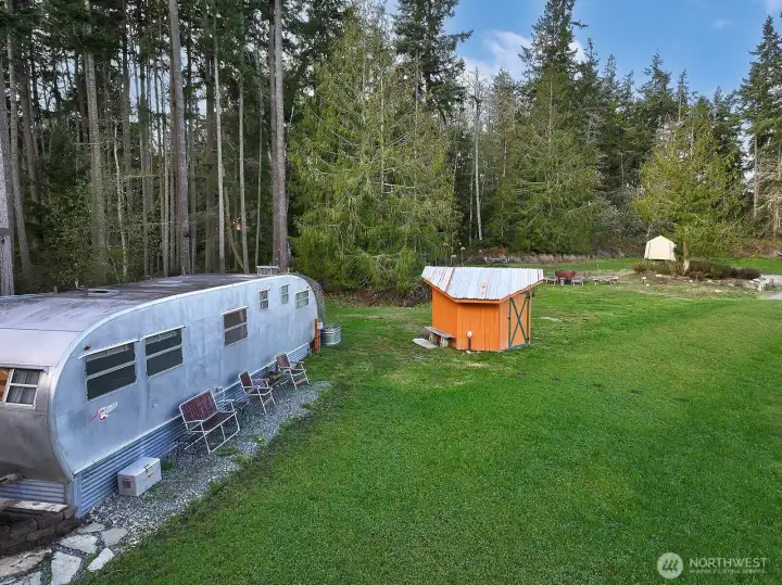 Stunning acreage thoughtfully developed & maintained. Nearly 5 acres of wooded & flat property, beautiful home site identified. Well connected, Septic permit, 1400sf insulated 2 car shop w/ loft. Access to North & South sides of property. Power on North & South sides of the property. South/Shop side has 320-amp meter base. North/house side is wired for a home & includes 320-amp meter base on a power fence, 200-amp ATS for future generator, 3 separate 50-amp RV hookups on the North side. 78 young Leyland cypresses planted around the house site. Includes 35 ft 1951 Royal Spartanette trailer in immaculate condition, connected to power. New Home? Airbnb? Trailer camping park? So many possibilities. Come Find your Whidbey!