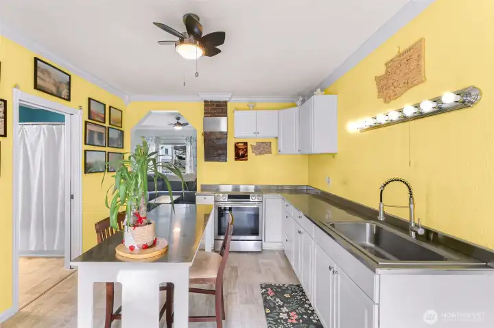 First time buyers, investors, and more! Beautifully maintained 2-bed, 1-bath home in the heart of Ferndale, just minutes from three scenic parks and I-5 access. Easy layout between living space and kitchen boasting updated cabinets and stainless appliances. Bonus laundry room with additional cabinet storage. Features include fresh interior paint, newer hot water tank, and a newly replaced deck. The large yard offers endless landscaping potential, complete with a potting shed and generous outbuilding for parking, workshop space, and much more! Mortgage savings may be available for buyers of this listing.