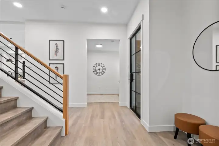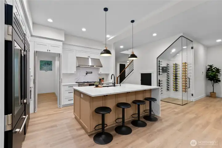 Experience refined smart home living in this exceptional Lynden retreat—nestled among evergreens & in town. Step inside to discover a chef’s dream kitchen true Caliber refrigerator/freezer, double ovens & hidden butler’s pantry. Living area boasts a stunning glass-enclosed, UL-certified wine fridge. Main-floor primary suite is pure indulgence with a steam shower, soaking tub, walk-in closet & private laundry. Remote/app-operated privacy glass opens to an inviting outdoor kitchen & spacious yard bordering scenic walking trails. The oversized RV bay offers versatility—perfect for gym, batting cages, or indoor hoops. Thoughtful built green design & quiet surroundings create a one-of-a-kind haven walking distance from down town! Welcome Home!