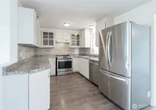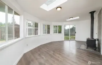 Affordable 4-bedroom home centrally located between Bellingham, Lynden and Ferndale. Seller updated the roof, windows, flooring, kitchen cabinetry, backsplash and sink, energy-efficient appliances, and plumbing. Updated bathroom with new shower/ deep tub insert and dual vanity, half bath added to primary bedroom,and interior painting. featuring a unique back-of-the-house sun room with stand-alone wood stove and two sliding glass doors leading out to the fully fenced backyard with paver patio and garden beds. Oversized almost 1/4 acre lot with huge front yard and RV/boat parking. Two houses from the community park.